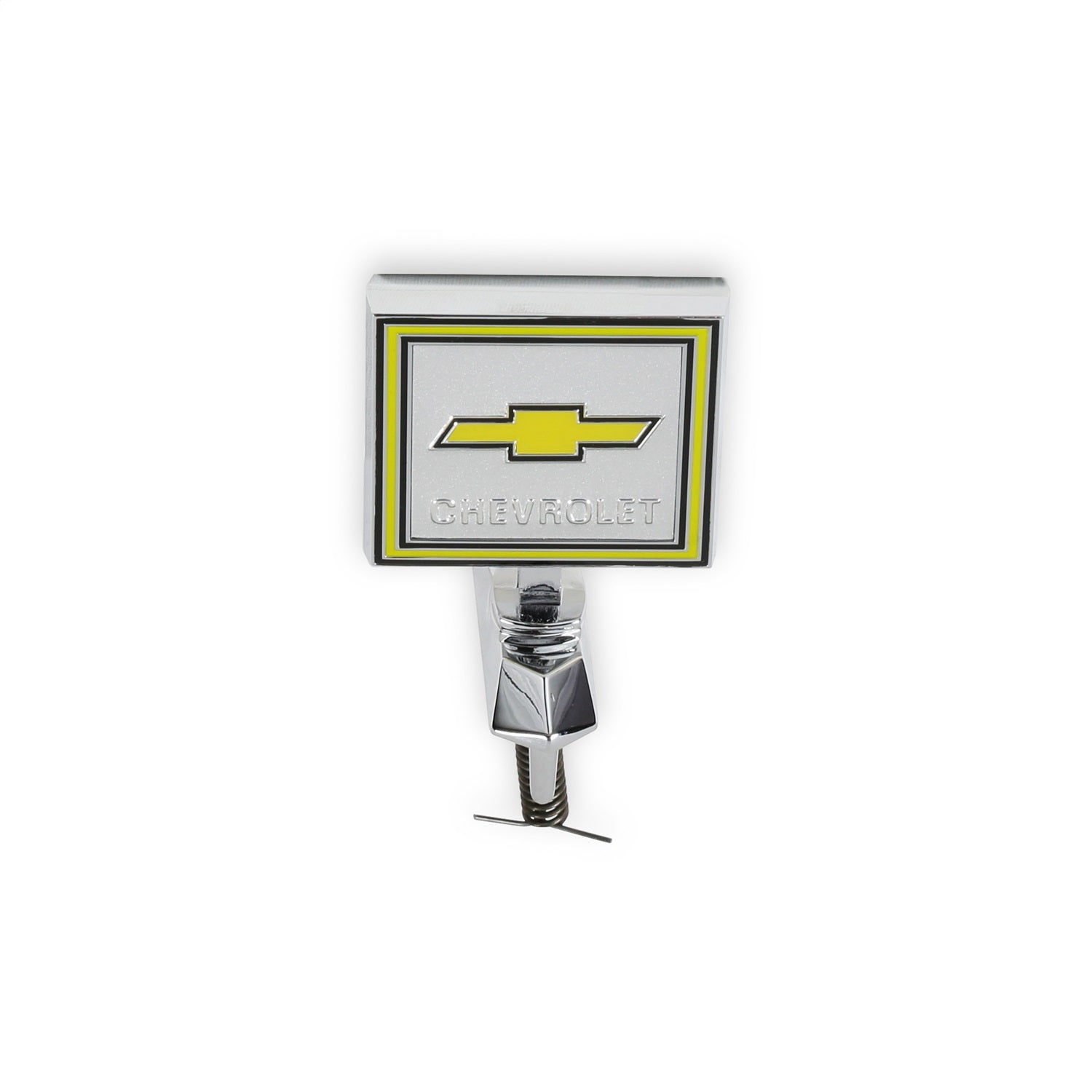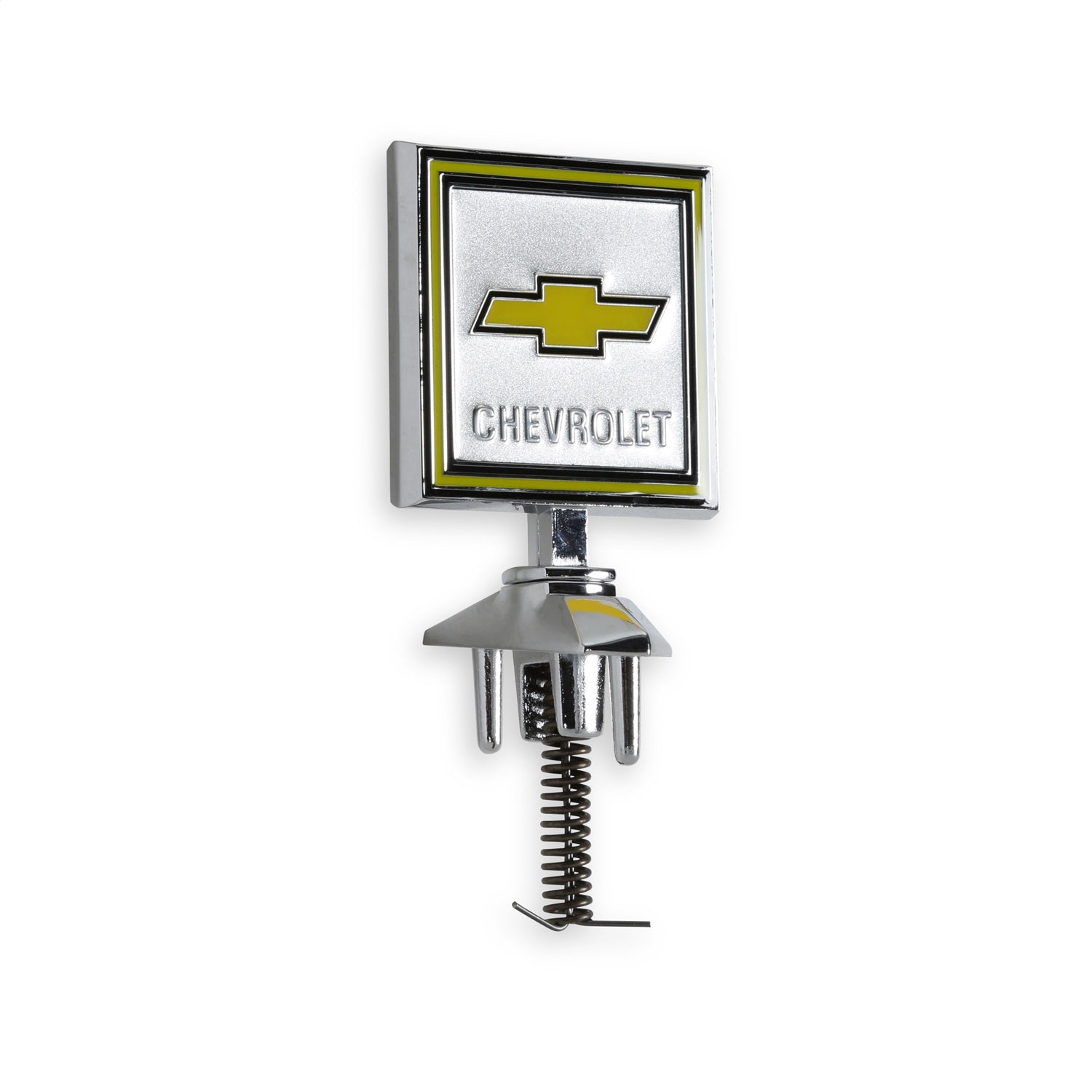 Holley 04-543 - Hood Ornament; Silver/Yellow; CHEVROLET Script; Incl. All Factory Mounting Points;