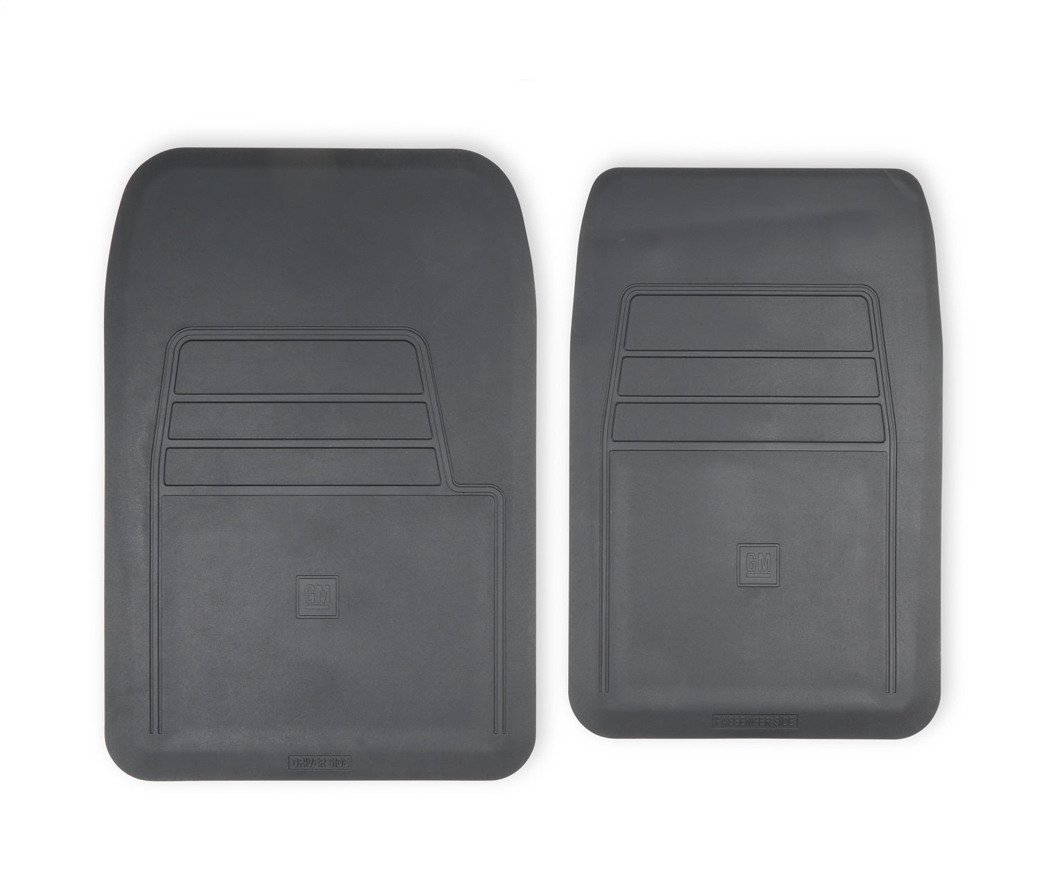 The Holley Classic Trucks floor mats are a great looking and practical add-on for your GMT 400 (OBS) pickup and SUVs! These mats, featuring the trademarked "GM" logo, are based on the nearly impossible to find originals and are officially licensed by Chevrolet. They are modeled to provide all of the same dimensions and detail as the factory originals. They are made from extremely durable, easy-to-clean PVC rubber, providing protection for your carpet and insulating your interior from heat and road noise. Backed with anti-slip spikes, these floor mats wont slip and slide around while youre out cruising.