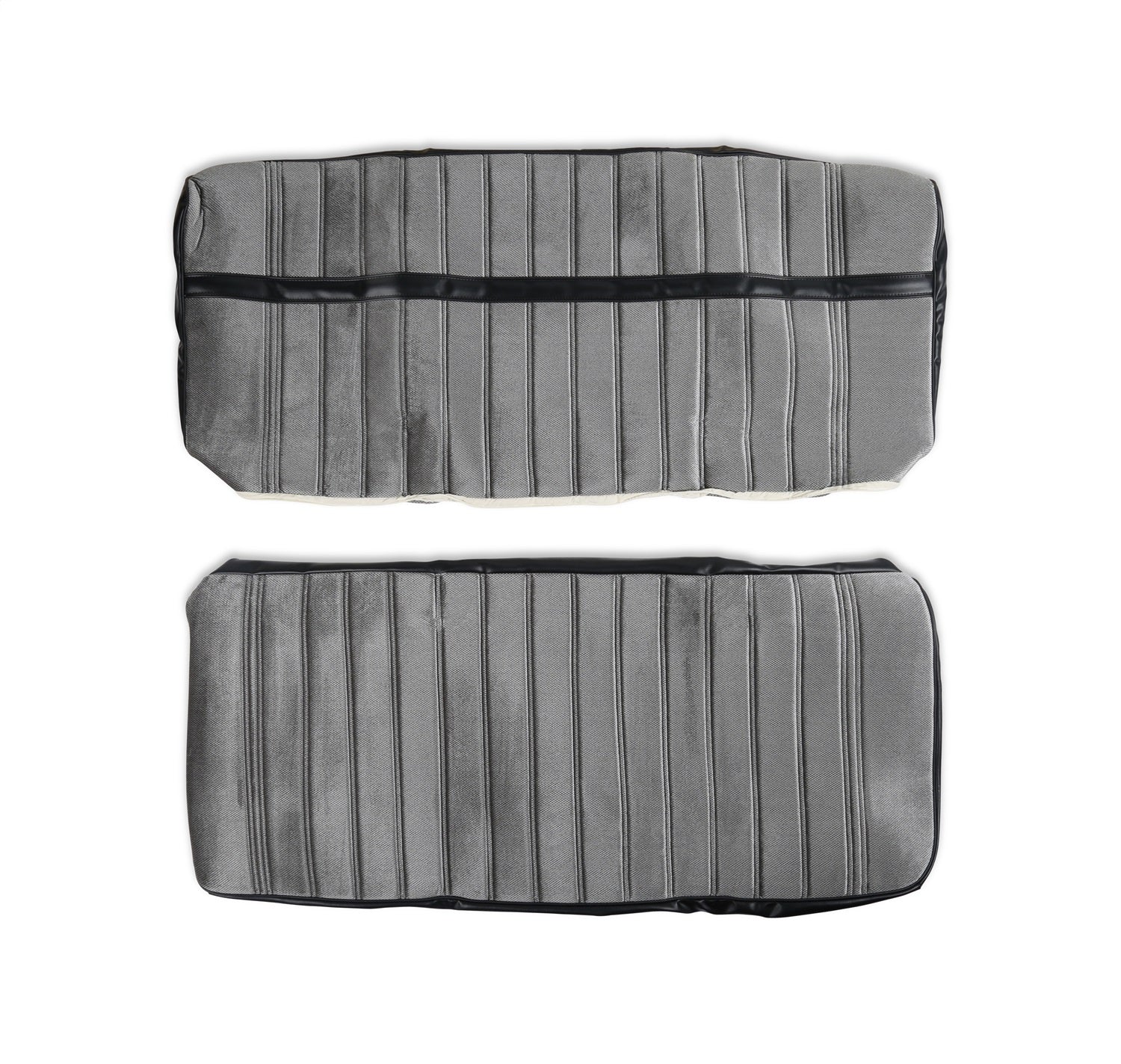 This Chevy/GMC Truck Seat Upholstery set is a high quality product following the factory pleat design, sewing pattern, and factory attachment points. Features Regal velour with vinyl trim for a luxurious feel and look. Includes upholstery with 3 in. wide vertical pleats with 1 in. wide vinyl belt across backrest, instructions, hog rings and hog ring pliers. Requires physical seat to be removed from vehicle, old upholstery removed and new upholstery installed. This is replacement seat upholstery only; not slip on seat covers.
