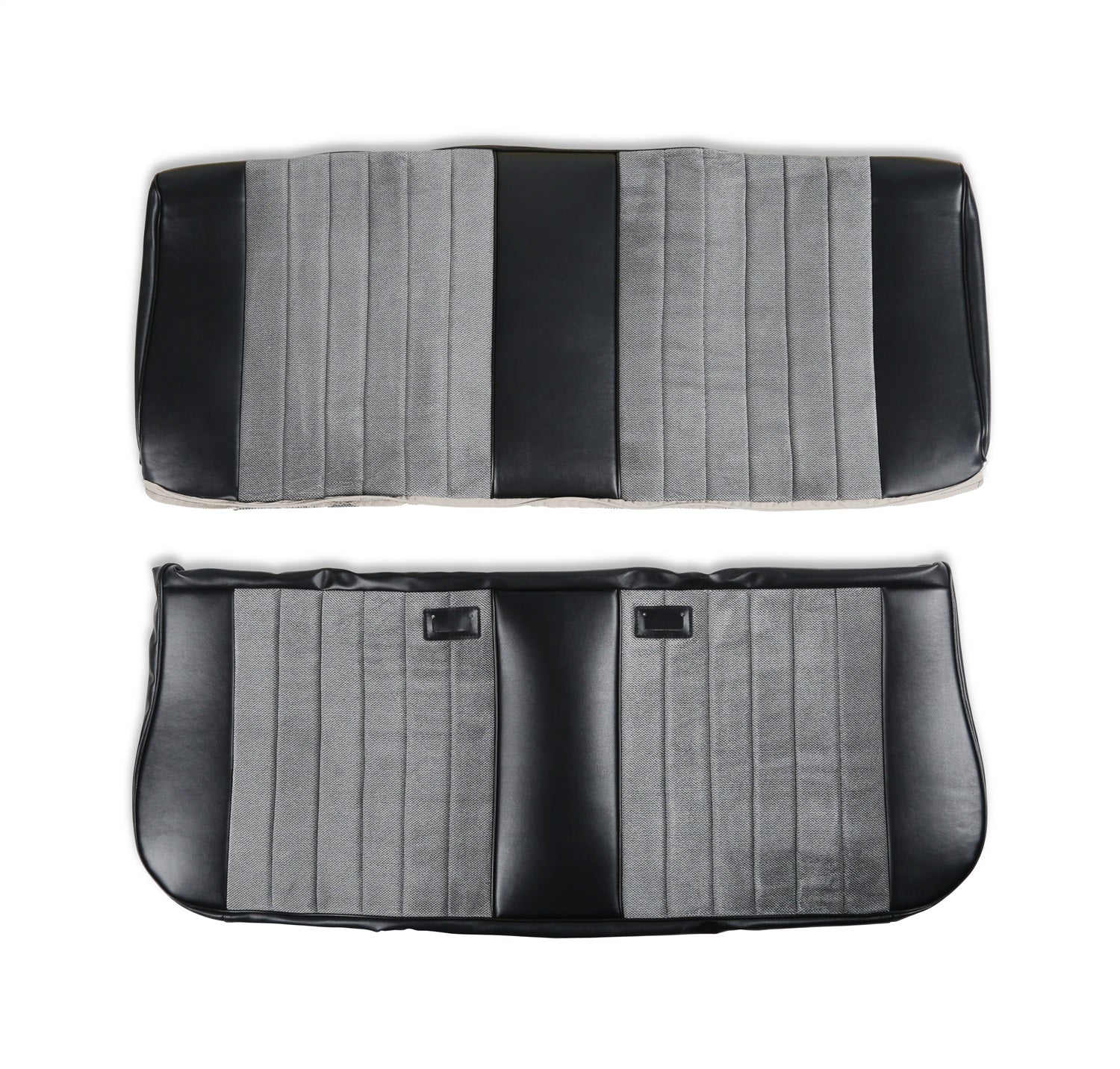 Holley Classic Truck Seat Upholstery Kit; Standard Pleat Cloth/Vinyl; Black/Silver; 3 in. Wide Vertical Pleats; 10 in. Wide Smooth Area;