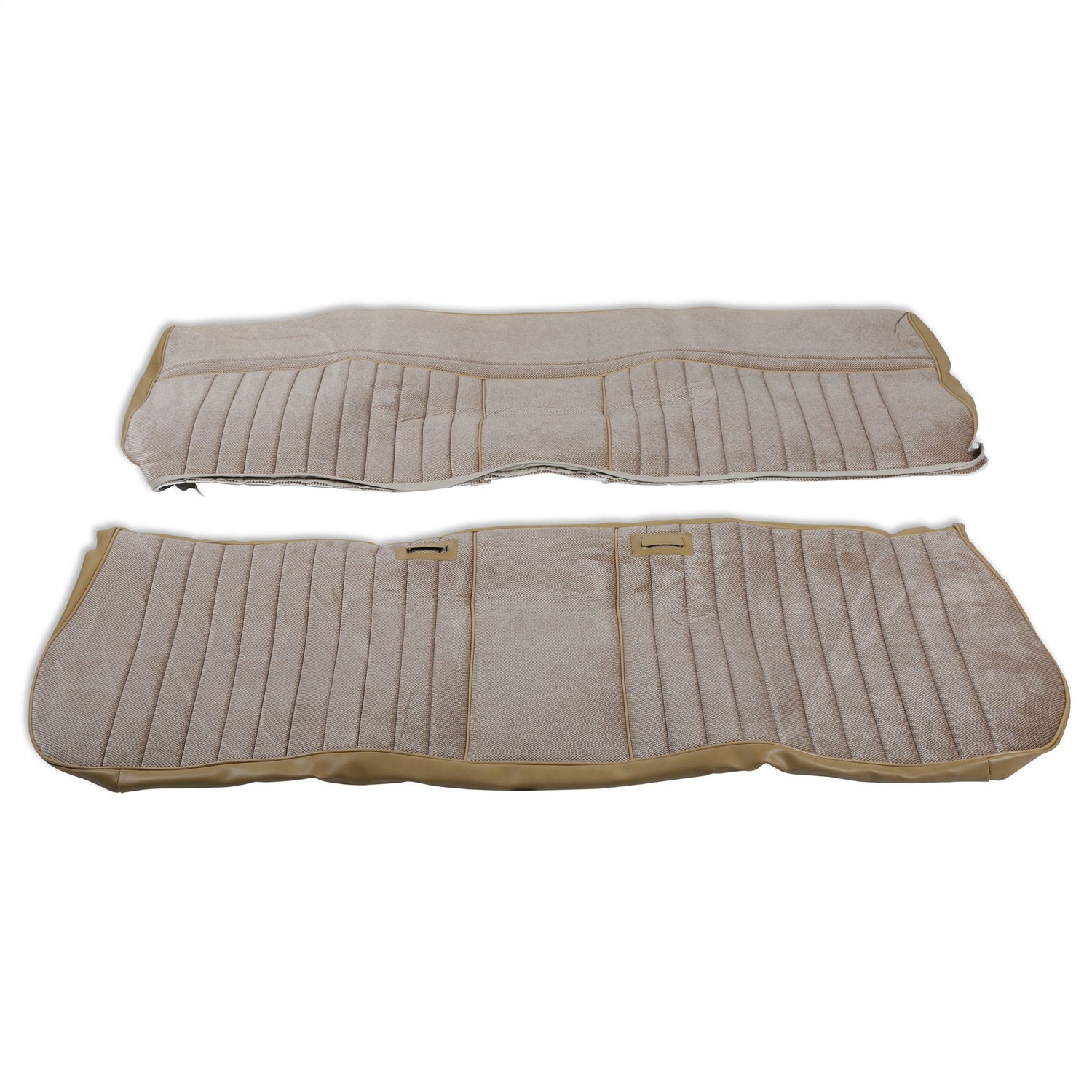 Holley Classic Truck Seat Upholstery Kit; Deluxe Pleat Cloth/Vinyl; Tan; 2 in. Wide Vertical Pleats; 10 in. Wide Smooth Area;