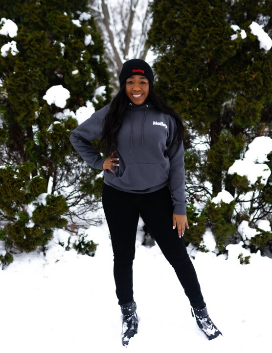 Comfort and Fashion meet with this Holley branded fleece hoodie!