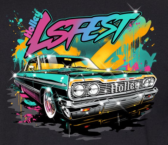 Rev up your wardrobe with the official Holley LS Fest Lowrider Tee! This eye-catching shirt captures the heart and soul of LS-powered culture with a bold, vibrant design that demands attention.