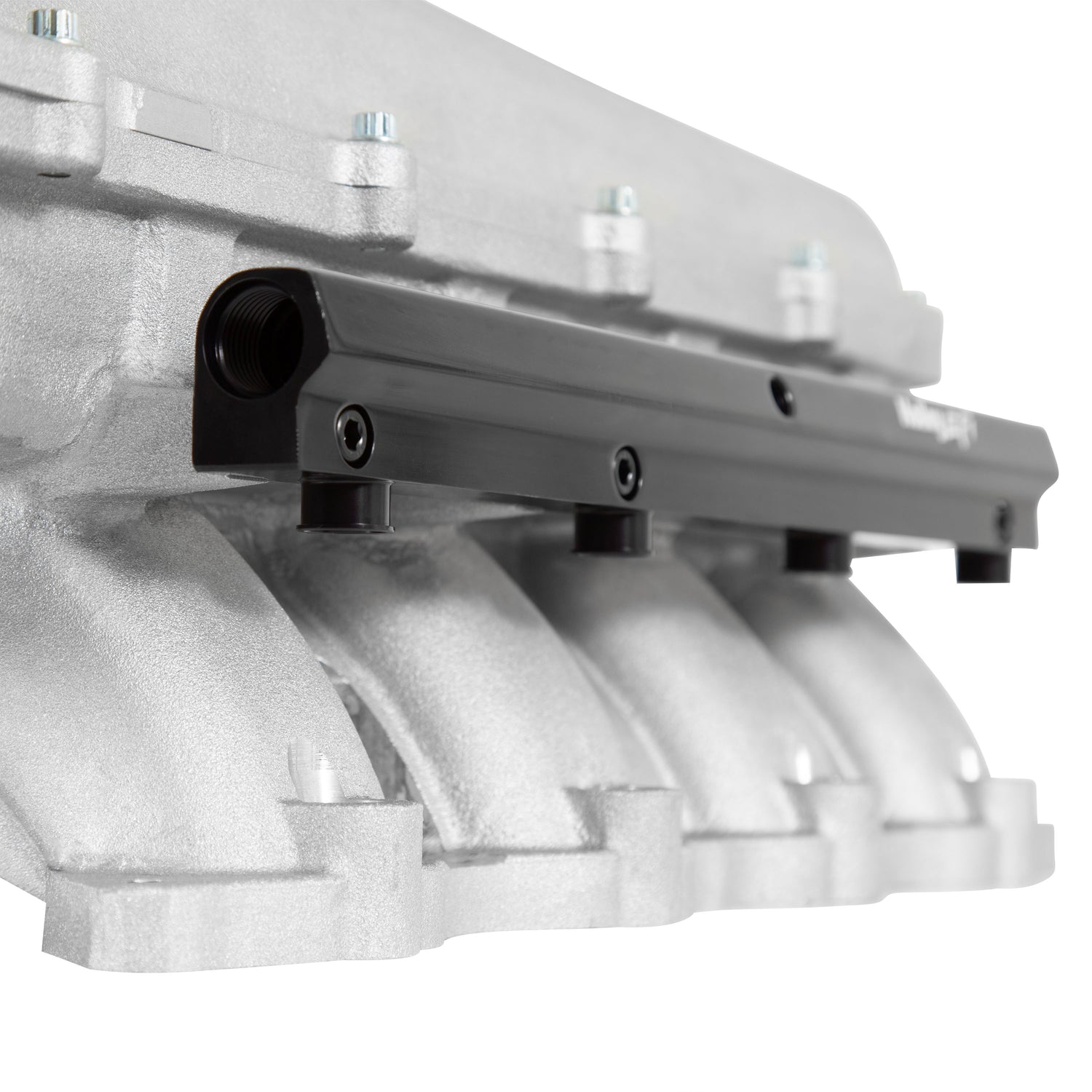 - Fuel rails with -8AN ports and dual 1/8 NPT accessory ports for gauges or Gen 3 direct injection fuel line hookup