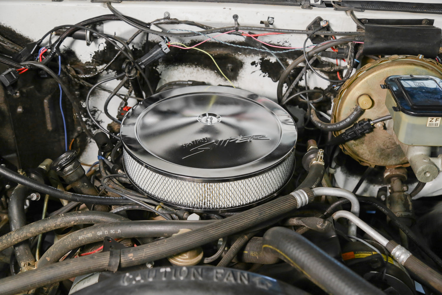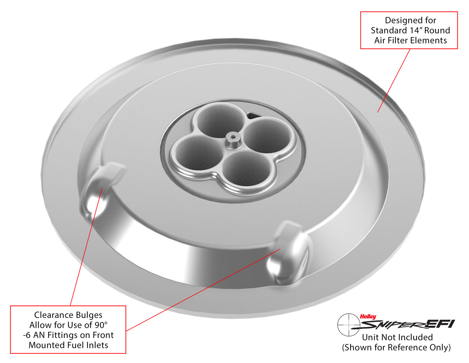- 14” diameter, stamped steel construction with embossed Holley Sniper logo