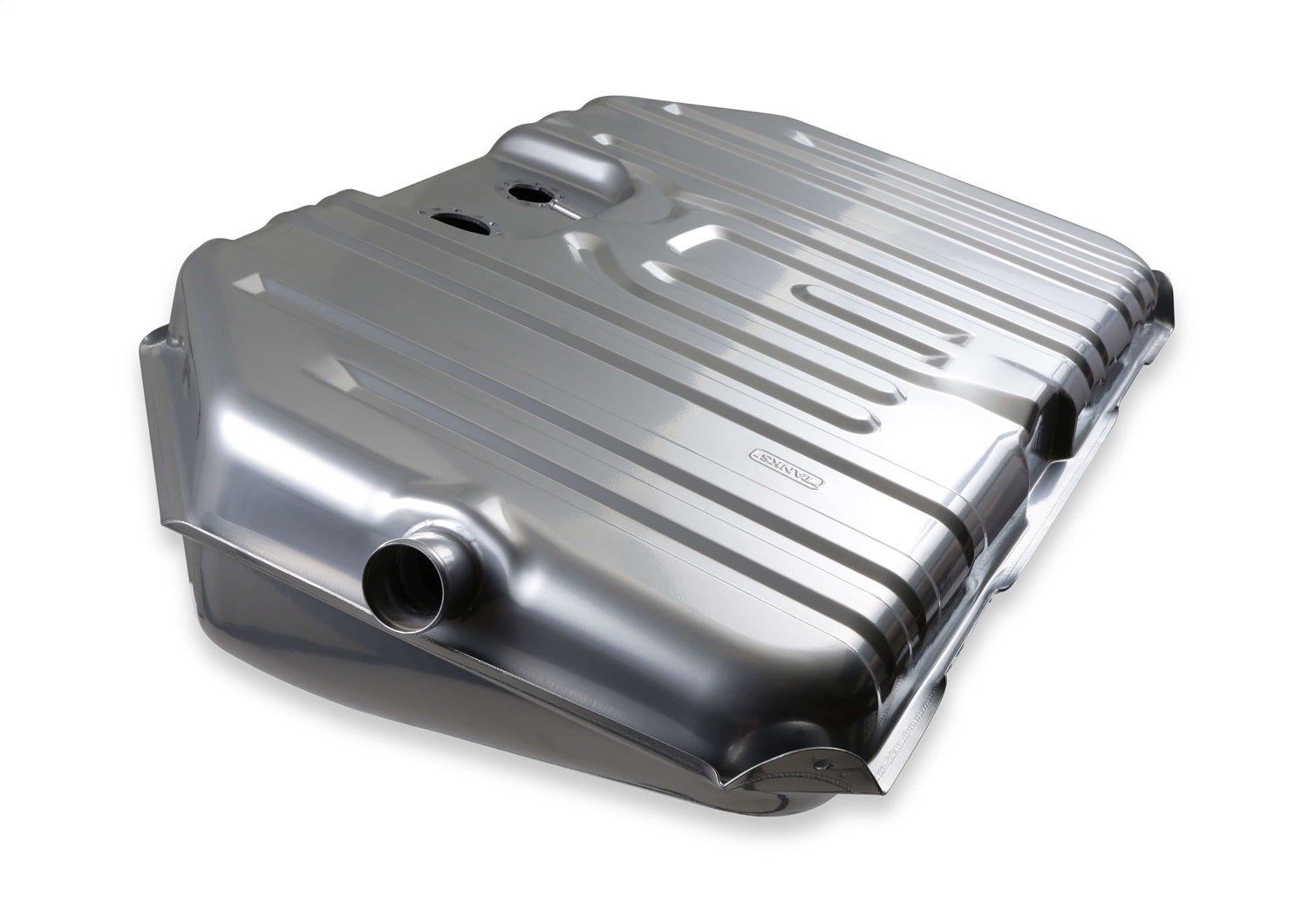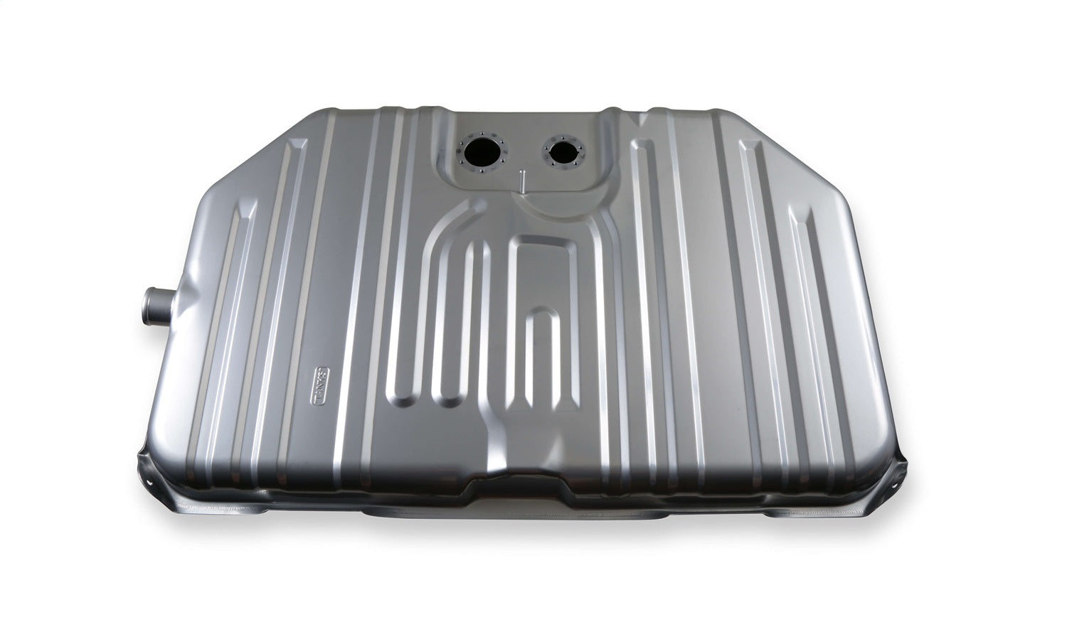 Fuel tank is a direct fit for your application with no body modifications necessary. The kit includes the tank, a 400 lph fuel pump, fuel level sender, new tank straps, and the filler neck. The tank is powder coated for corrosion resistance and great looks. This notched corner tank is perfect for mini-tub applications. Both corners are notched 7" in and 7" back for better tire and exhaust clearance. The rear of the tank is the stock depth while the front of the tank is 1" deeper than stock. The 255 LPH fuel pump supports up to 750 EFI (@ 60 PSI at 13.5 Volts / 10.4 AMP Draw)