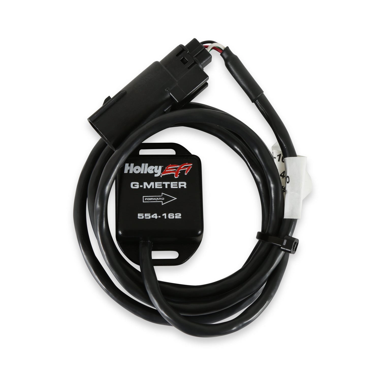 Introducing the Holley EFI 2 Axis G-Meter. Designed to be stable in the harshest environment. Co-designed with RACEPAK, this G-meter would be a perfect fit for your four digit horsepower drag radial machine or an autocross corner carver. The G-meter features both X and Y axis outputs. The X axis registers from a negative 3 G (deceleration) to a positive 12 G (acceleration). The Y axis registers +/-7.5 G. In order to ensure the installation is simplified, the ECU pins come pre crimped. Loose pins are also provided if the cable needs to be shortened for clean installations. This can also be used with non-Holley ECU's as long as they're are (2) 0-5V analog inputs available.