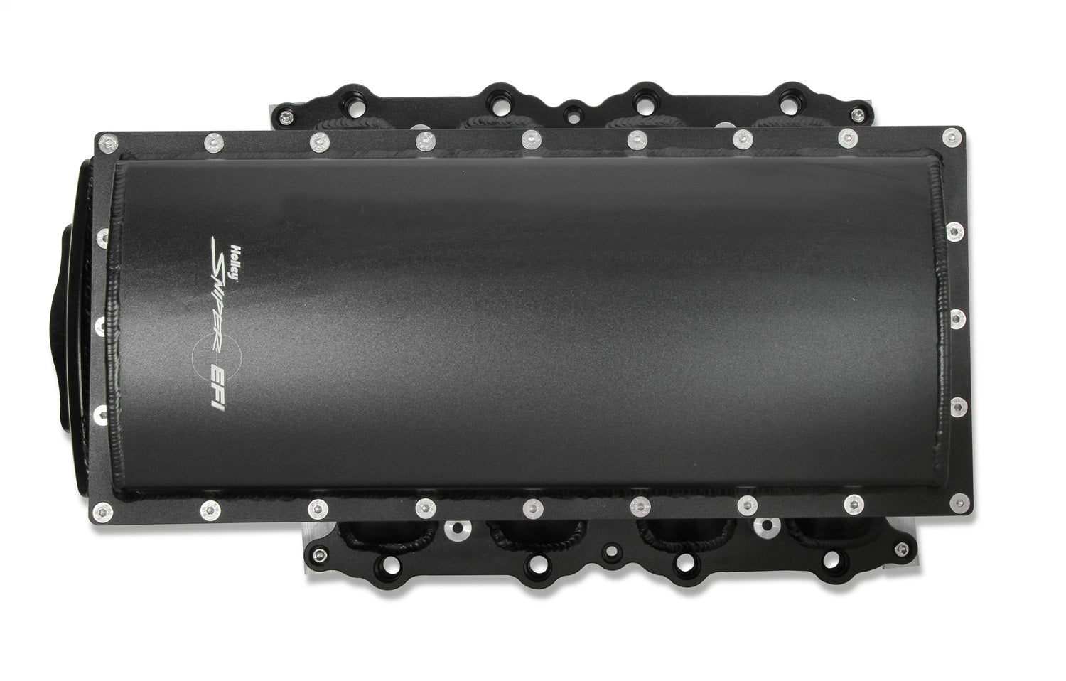 Holley Sniper EFI Fabricated Manifolds continues to push the aftermarket by introducing our latest Race Series line of intakes for GM LS 1/2/6 and Ford Coyote 5.0L engine platforms. Feedback from racers and install shops, related to our original line of EFI intakes launched in 2015, were critical in the development of these Race Series manifolds. These Intakes are more robust, good looking, perform above and beyond the original Sniper EFI series of intakes, and offer a very competitive alternative to much higher priced offerings in the marketplace making for a compelling value for those in the market for a high-performance sheet metal style intake manifold. Each manifold is ready to bolt on out of the box and are designed to accept our Sniper high-flow throttle bodies and include high flow fuel rail kit, TB Spacer, and a removable top. Each manifold is precision fixtured and welded for a perfect fit and maximum structural integrity.
