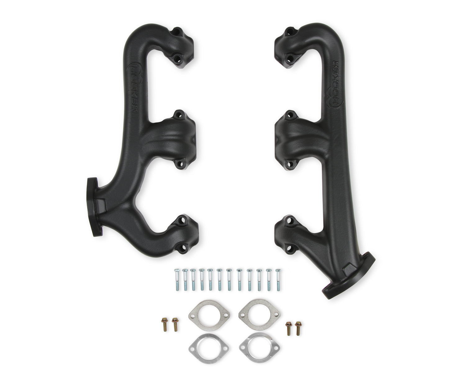 Hooker Exhaust Manifolds; 1.625 in. Tubing; 2.5 in. Collector Dia.; Black Ceramic; Cast Iron; D-Port Shape;