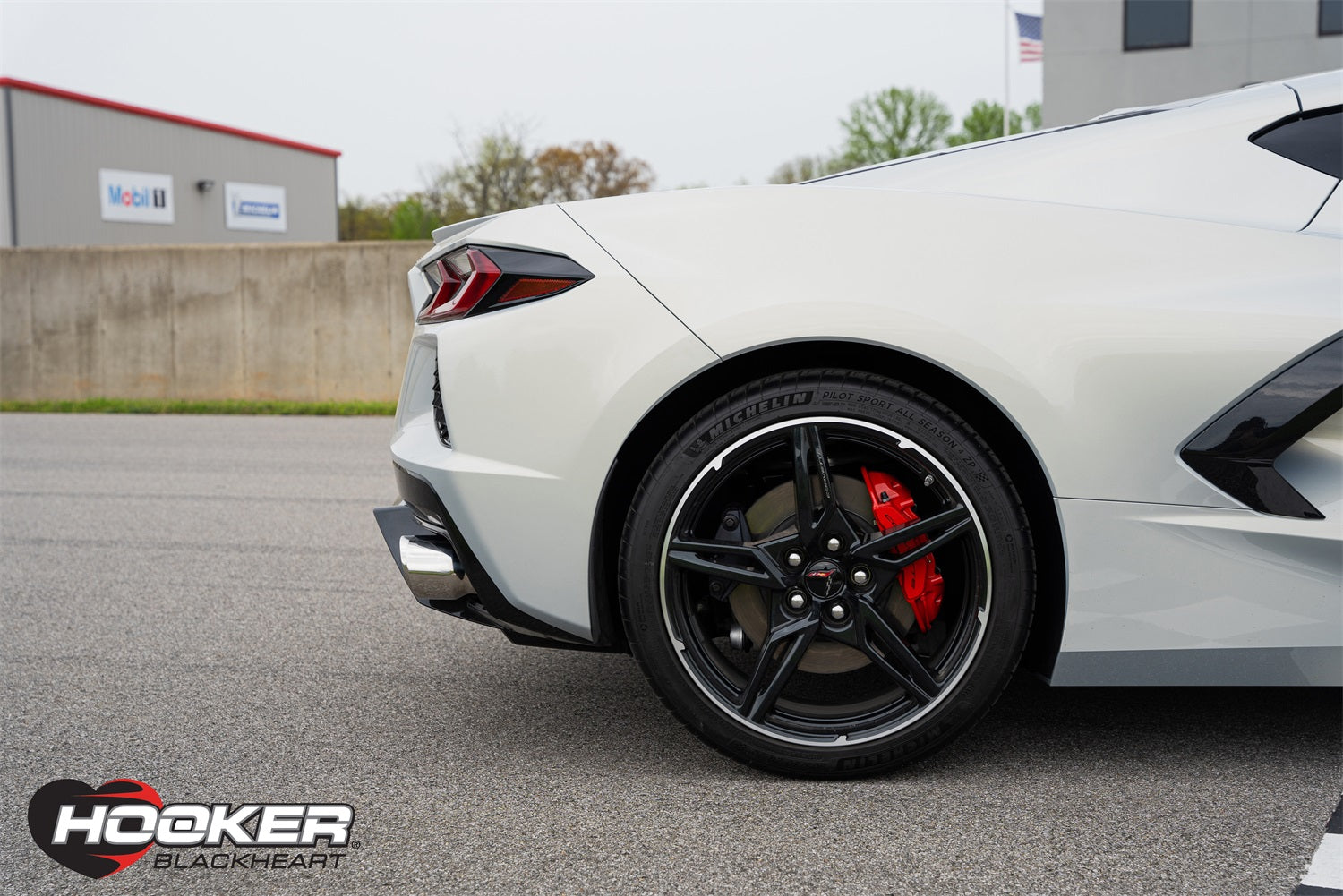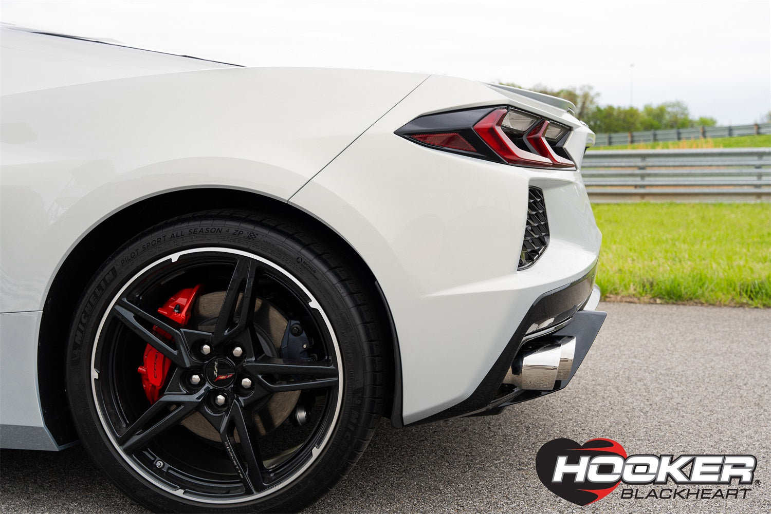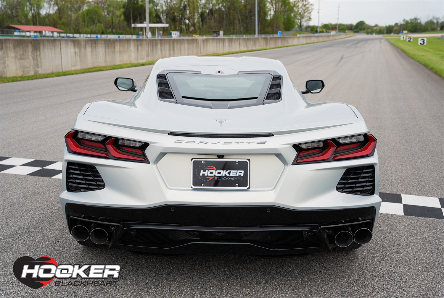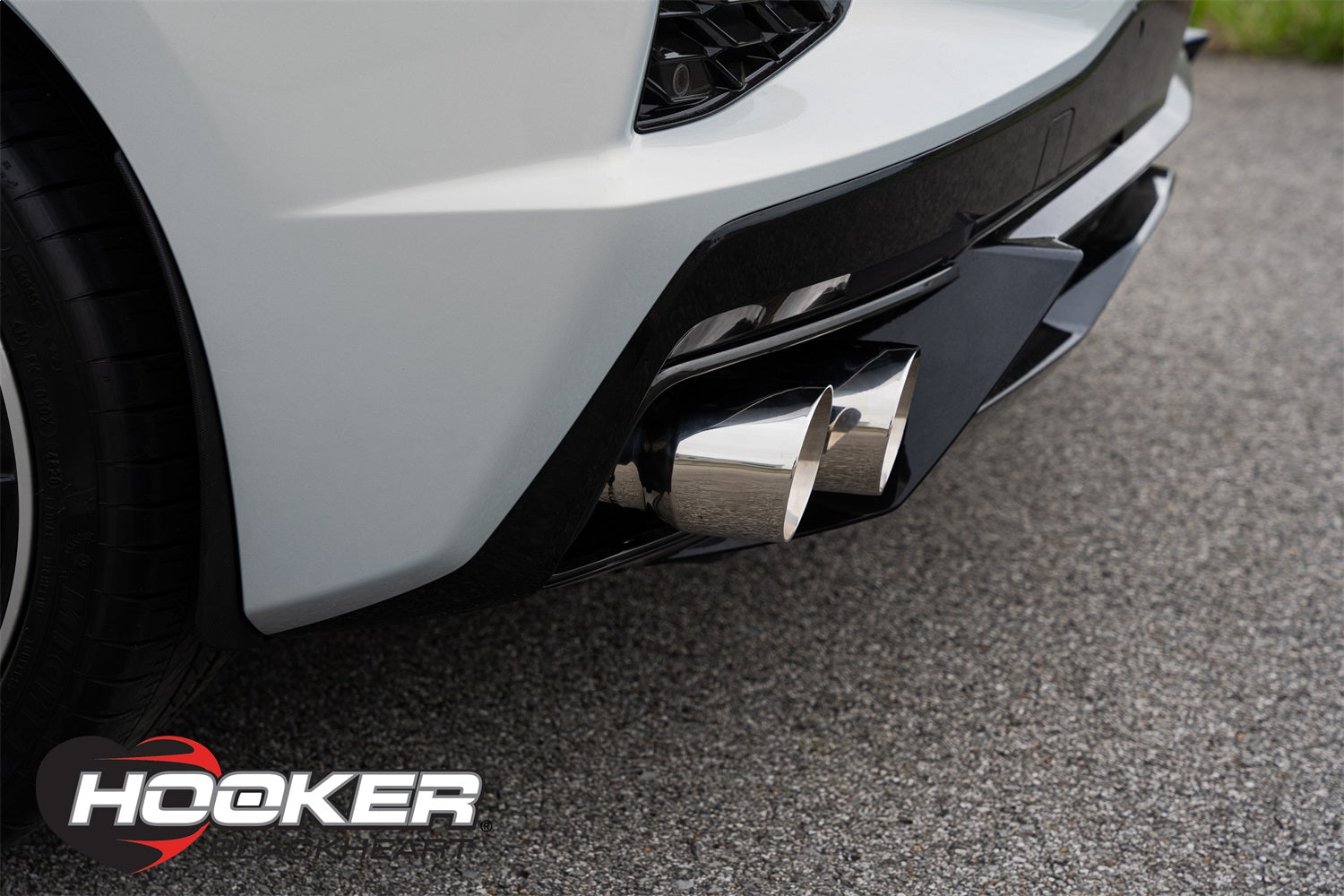 If youre looking to open up the sound of your Stingray, these Hooker BlackHeart 304 stainless steel Cat-Back exhaust systems will make your 2020-2023 C8 Corvette sound like the supercar it is. The non-muffled straight through kit design will not only give your car a deep aggressive rumble, but it will also reduce the weight of the overall exhaust system. Also, included in these systems are AFM valve simulators that reuse the factory valve actuators to eliminate faulty check engine lights. While designed for C8s without the factory NPP dual mode exhaust option, this system can be used with NPP-equipped Stingrays if NPP simulators are used (sold separately). The systems include mandrel bent 3.00-inch tubing to maximize the exhaust flow, and are finished off with four 4.00-inch double walled polished or black stainless steel tips that have the Hooker BlackHeart logo laser etched into them for great looks. These two-piece exhaust systems reduce the overall installation complexity by not having to align both sides at the same time. Hardware that utilize the factory mounting points are included. Backed by Hooker BlackHearts limited lifetime warranty.