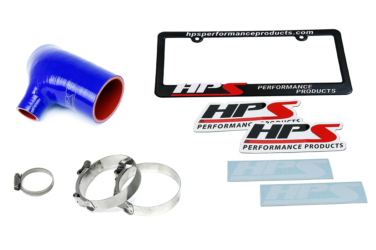 Replaces stock restrictive post MAF air intake hose with the HPS Performance high temp 4-ply reinforced silicone tube. Includes stainless steel hose clamps. No heat soak. No additional modifications are required. Retains stock air box.