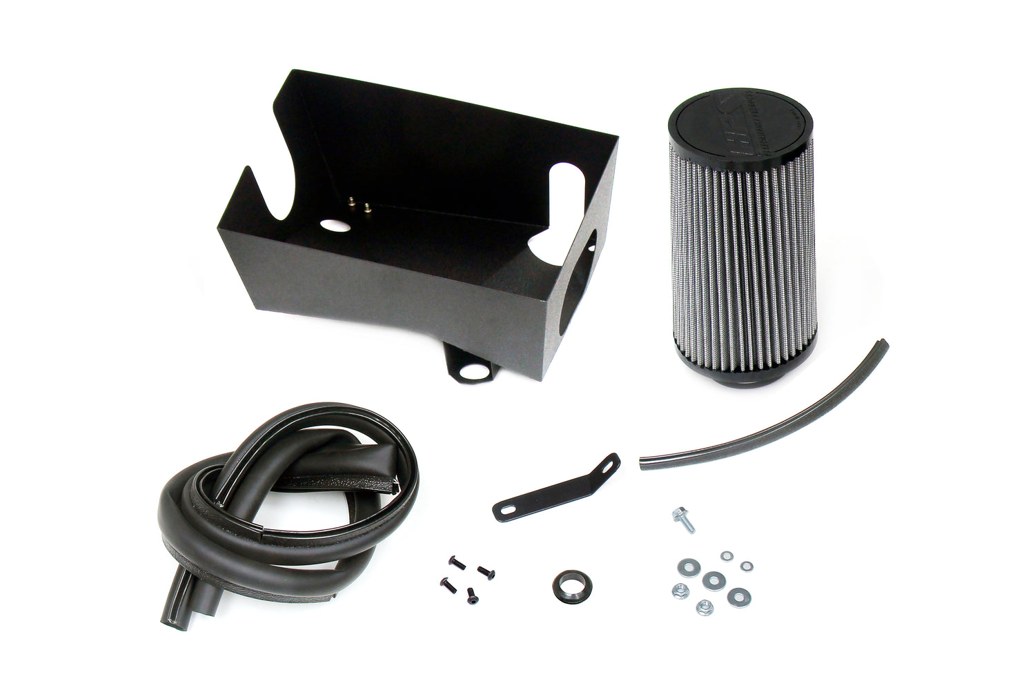 Includes HPS Performance 3" aluminum pipe, heavy duty powder coated heat shield, washable and reusable air filter, and mounting hardware. No modifications required.