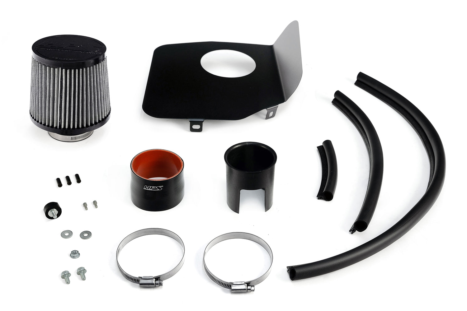 Includes HPS Performance 3" aluminum pipe, high temperature resistant 3-ply reinforced silicone hose, washable air filter, 100% stainless steel embossed clamps, and custom-made heat shield. Bolt-on installation. No modifications required.