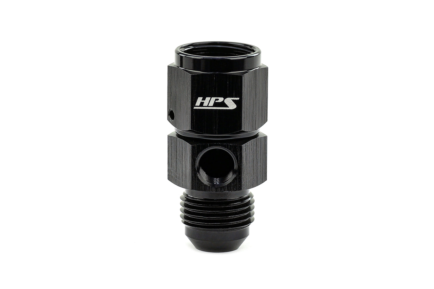 HPS AN Adapter Fittings are designed to be used in a variety of applications such as cooling, oil, and fuel. This adapter features 37 degree AN male and female ends and a 1/8" NPT female branch in between to conveniently add sensors, switches, and other components to your system. These fittings are easy to assemble without the use of any special tools. HPS AN fittings are Type II anodized in black for a clean appearance that is corrosion and scuff resistant. Suitable for transporting air, water, coolant, oil, and most fuels.