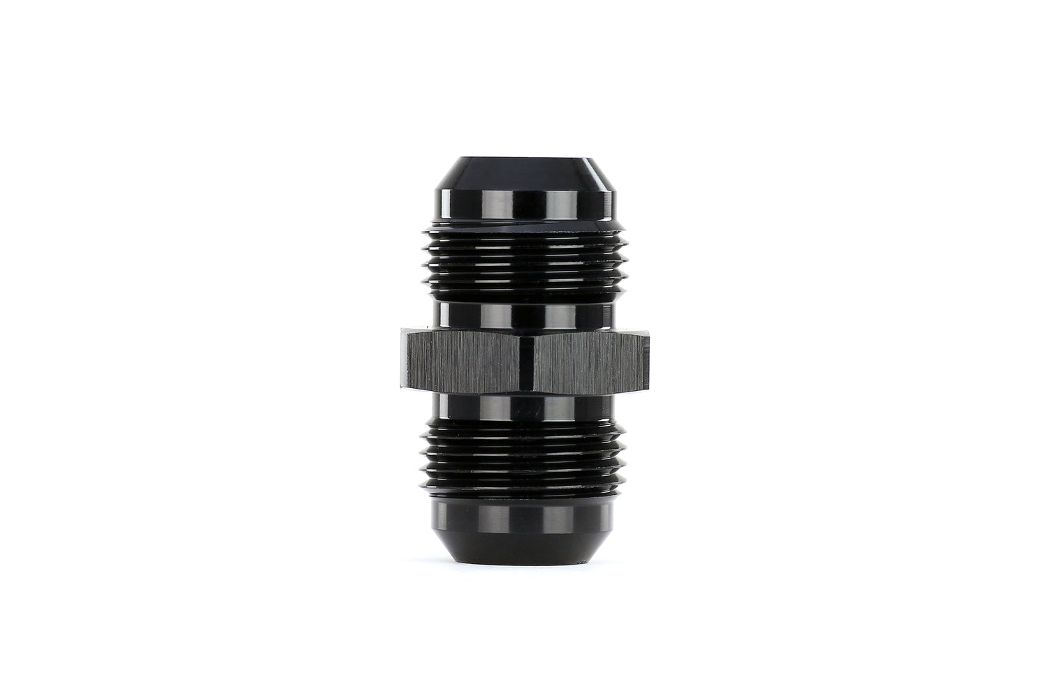 Male AN-12 Flare on both sides, machined from 6061 aluminum, durable black anodizing for corrosion resistance.