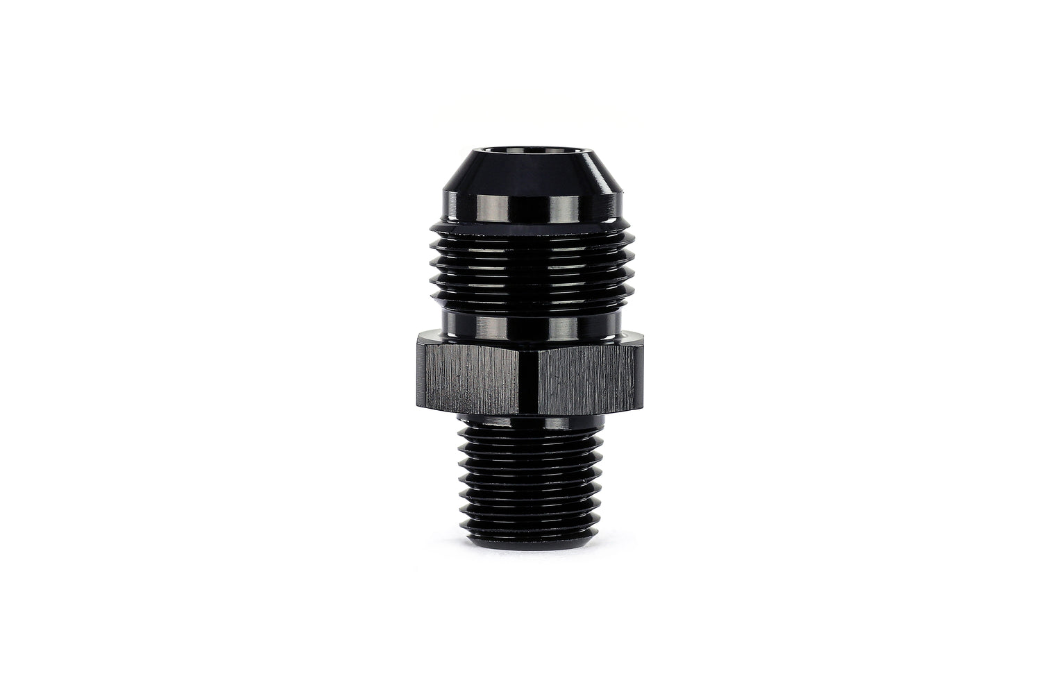 Metric fittings are widely used in automotive applications however repeated servicing will require replacing a washer to ensure that it does not leak. HPS AN to Metric adapter fittings converts your female metric threads to AN style fitting for easy, repeated serviceability. AN style fittings can be installed and removed many times without using any additional sealants or gaskets. HPS AN to Metric adapters are made from 6061 aluminum and Type II anodized black to provide improved abrasion and corrosion resistance.