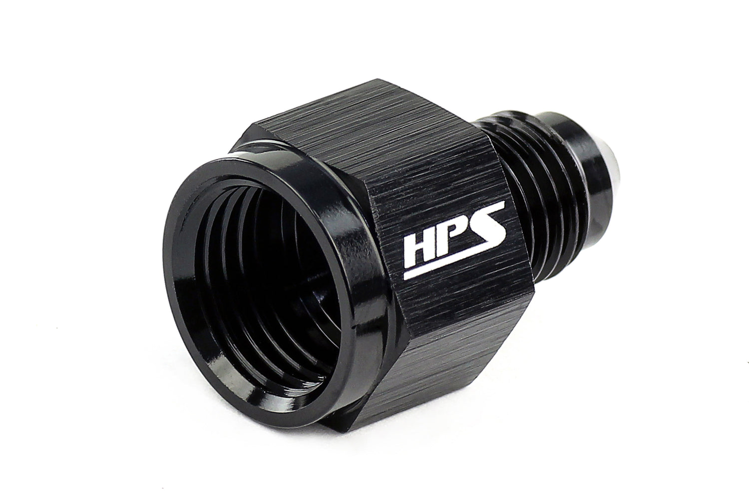 HPS AN Adapter Fittings are designed to be used in a variety of applications such as cooling, oil, and fuel. This reducer adapter has a larger female and smaller male end to allow you to connect parts that are sized differently. These fittings are easy to install without the use of any special tools. HPS AN fittings are Type II anodized in black for a clean appearance that is corrosion and scuff resistant. Suitable for transporting air, water, coolant, oil, and most fuels.