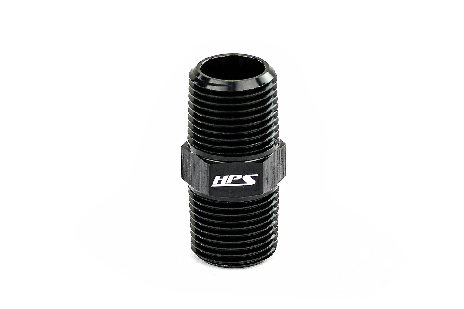 Safely and securely connect hoses, pumps, filters, and much more with an HPS Male to Male NPT Union Adapter. Made from 6061 aluminum and anodized in black for durable, corrosion resistant finish. Compatible air, water, coolant, oil, and fuel.