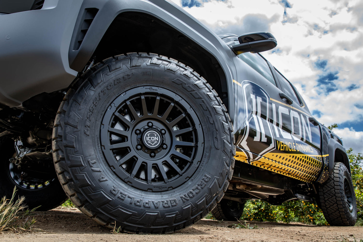 Staying true to the ICON Alloys approach, the Recon PRO has been engineered to maximize caliper clearance and optimize wheel position for un-hindered suspension travel and steering function. Backspace and wheel offset dimensions have been strategically developed to reduce scrub radius, improving all-around handling and ride quality. The Recon PRO has also been strength tested to yield a 3,200lb load rating - making it one of the strongest wheel options on the market. With build features such as these, it's clear that a set of ICON Alloys wheels is the perfect complement to any truck, Jeep, or SUV.