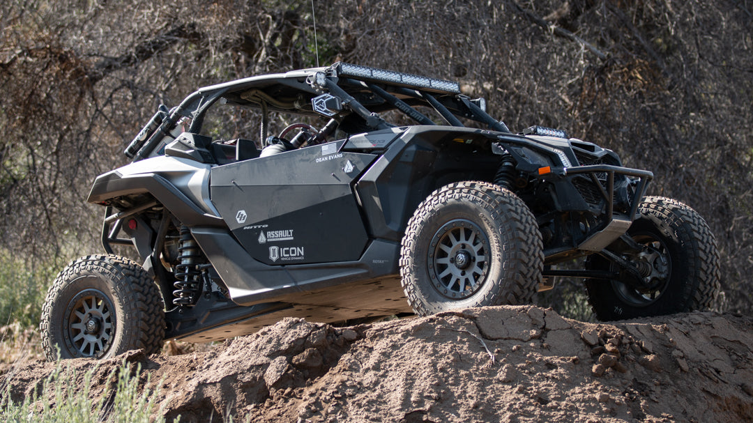 The UTV-Spec Compression features a knurled beadlock ring (with Grade 10.9 hardware) to provide excellent tire retention and a ribbed inner mating surface for a proper seal. In an effort to avoid potential trail damage the valve stem is placed between the spokes for outstanding protection. Backspace and wheel offset dimensions have been strategically developed to optimize wheel position, improving all-around handling and performance. The ICON Alloys Compression has also been strength tested to yield a 1,600lb load rating - making it one of the strongest wheel options on the market! With build features such as these, it's clear that a set of ICON Alloys Compression wheels is the perfect choice for your UTV.