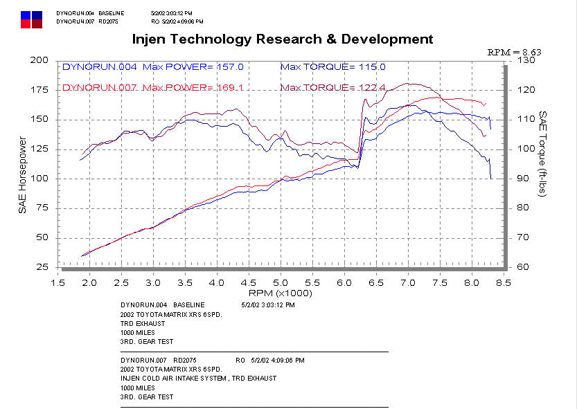 Injen RD2075BLK - 02-03 Toyota Matrix XRS Black Cold Air Intake **SPECIAL ORDER**