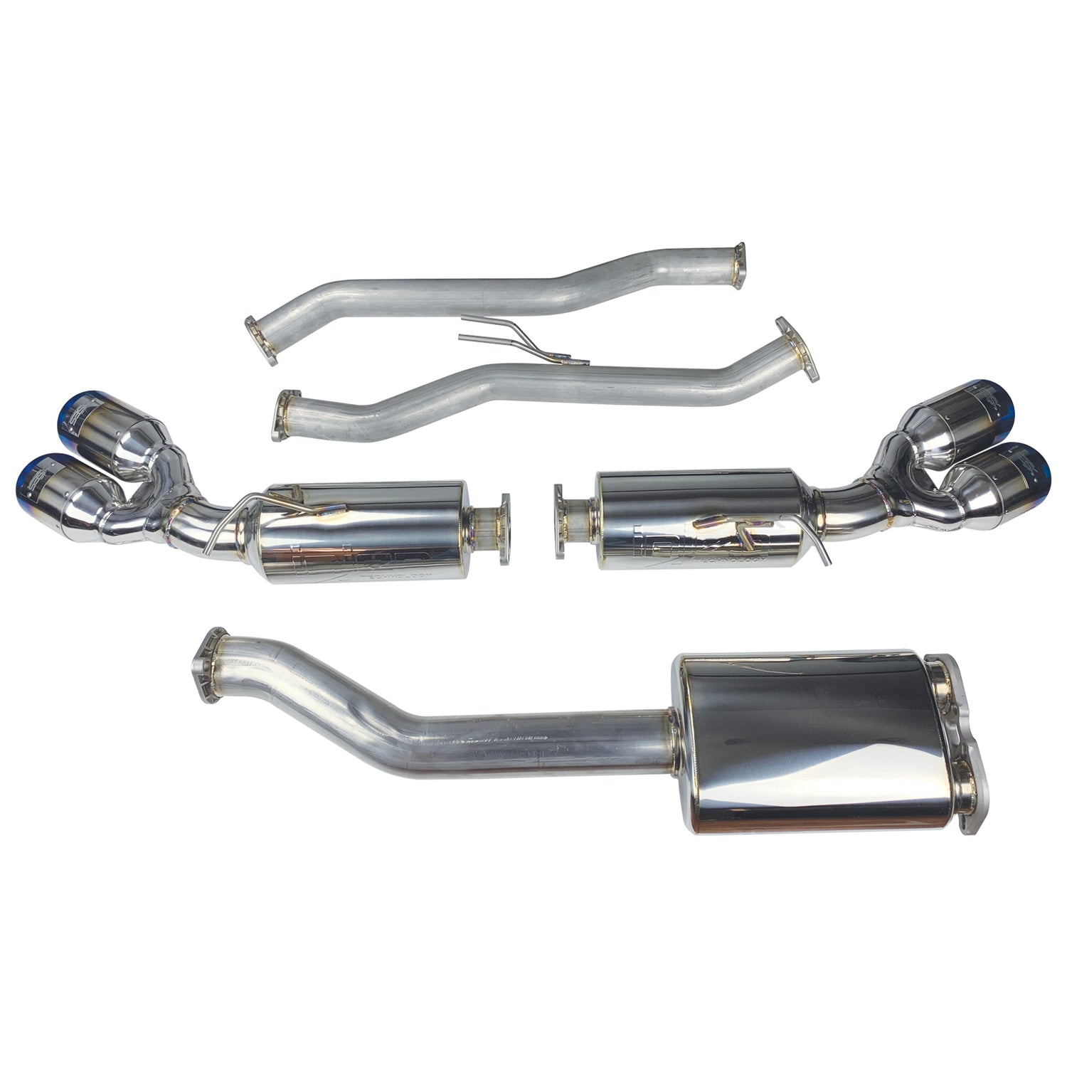 Cat-Back Exhaust System; Incl. Stainless Steel Tubing/Dual Mufflers w/Injen Logo/Flanges/Y-Pipe/Resonator/4 in. Titanium Tips; Gains +15.0 HP/Torque +26.0 ft./lbs.; Polished;