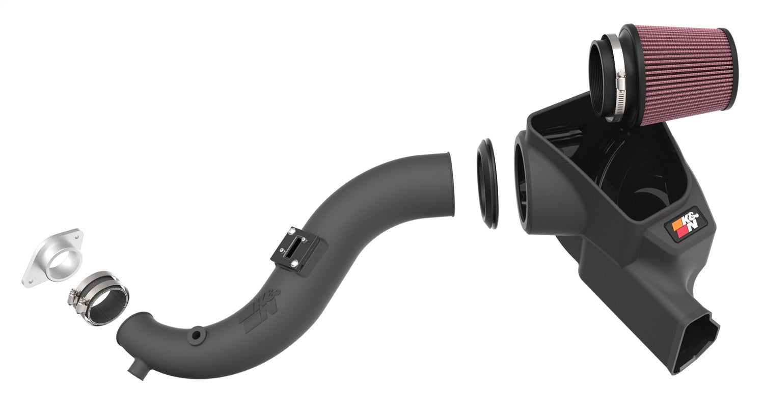 This K&N cold air intake system is engineered for your FORD MUSTANG ECOBOOST L4-2.3L F/L TURBO. A high-density polyethylene (HDPE) rotationally molded tube helps increase the volume of airflow to your engine and provides a guaranteed increase of 19.08 horsepower and 18.35 torque with no tune required. This intake system is paired with a washable, reusable High-Flow LIFETIME Air Filter featuring oiled cotton filter media. The oversized, conical design allows you to go up to 100,000 miles between filter services under normal highway driving conditions. A custom designed enclosed air box helps protect intake air from the high temperature of your engine bay, and the entire system can typically be installed in less than 60 minutes.