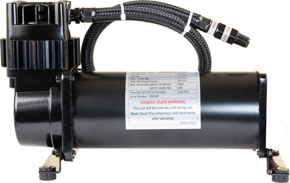 The only fully submersible WATERPROOF 12-volt air compressor for automotive applications. The heavy-duty, high output air compressor is not just water resistant, but waterproof. The 100% duty-cycle compressor is rated at 150 PSI and includes a snorkel air intake system with filter to locate the air intake up and away from dirt, water and debris, insuring years of trouble free operation.