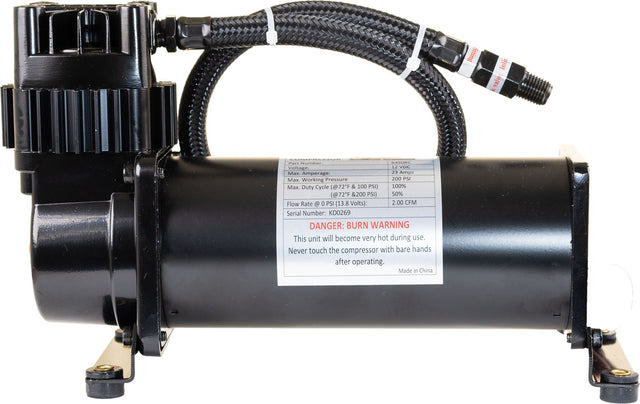 200 PSI Waterproof High Output Compressor with air line, remote intake "Snorkel" and hardware.