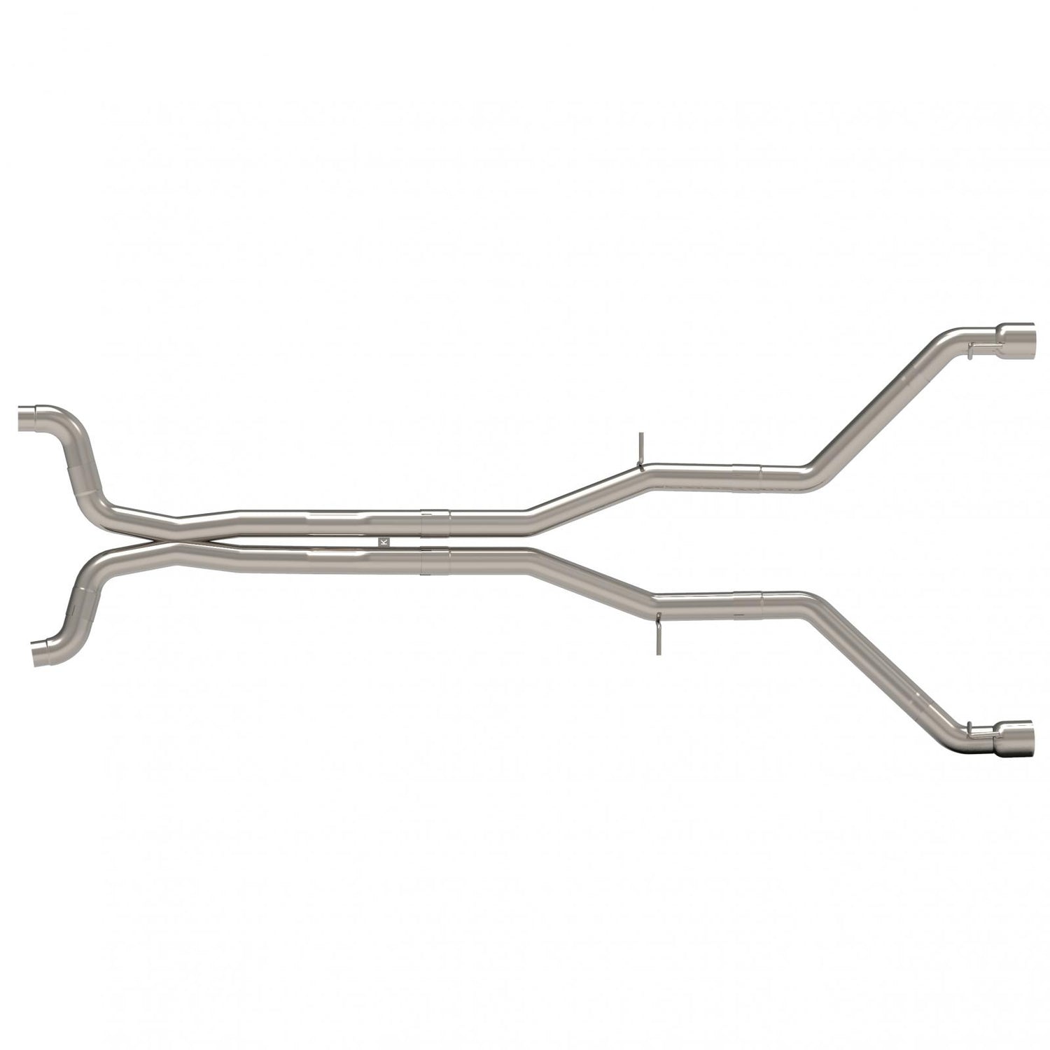 3in. Muffler Delete Connection Back Exhaust System for use with Kooks Headers and Connections Includes: 3in. X-Pipe; Muffler Delete Pipes and 4in. Polished Slash Cut Dual Tips. Will Not Connect To OEM Exhaust Manifolds