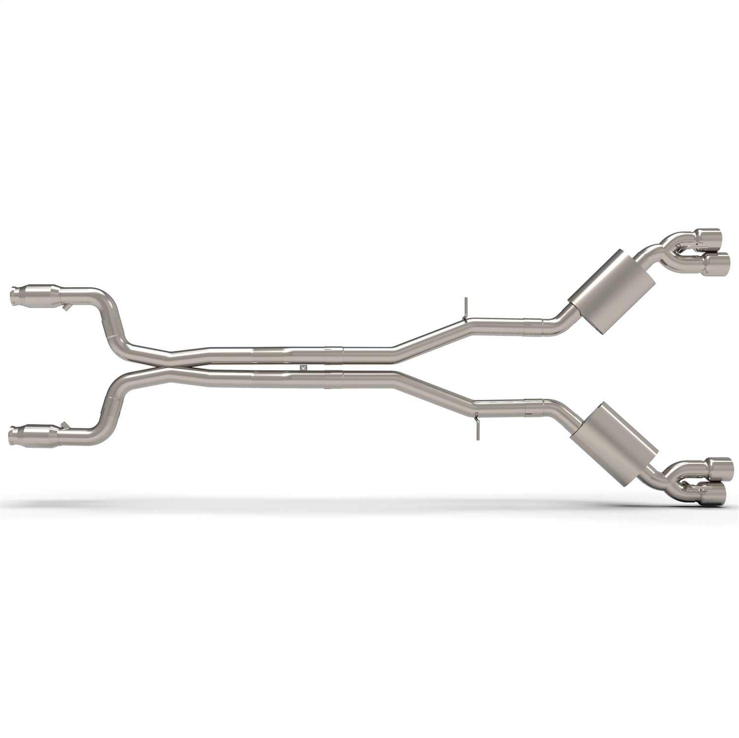 3in. Catted Header-Back Exhaust System. Includes: 3in. Catted Pipes; X-Pipe; Kooks Oval Mufflers and 4in. Polished Slash Cut Quad Tips. Connects directly to Kooks Long Tube Headers. STANDARD RACE CATS NOT FOR USE IN FORCED INDUCTION APPLICA