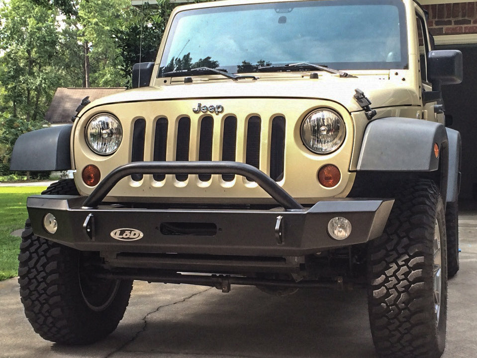 The LoD Offroad Jeep JK Signature Series Mid Width Front Bumper is constructed of 10 gauge, 3/16", and 1/4" steel. The bumper includes two 3/4" clevis mounts and comes standard with a winch mounting plate. The winch plate is designed to accept many of the popular winches. This bumper was designed to accept the factory fog lights, and to allow the winch to sit between the frame rails for added protection and improved air flow. Black Powder Coated for a durable lasting finish.