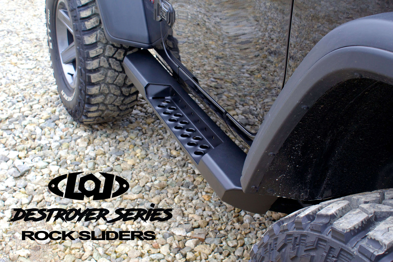 - The Lod Offroad 2018+ Jeep JL Destroyer 2 Door Rocksliders feature both rocker protection and usable steps for trail or road use. Easy to install, no drilling, complete bolt-on design that has been tested.