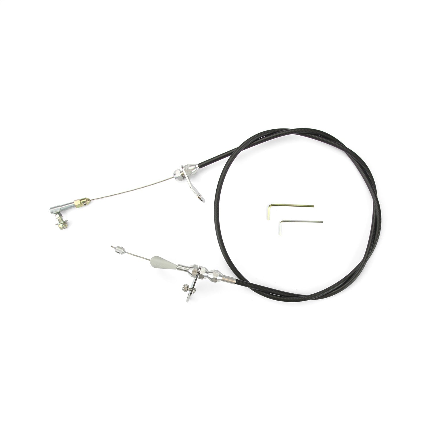 Lokars U-Cut-to-Fit Kickdown Cables are available in either stainless steel braided housing, black stainless steel braided housing or black housing. They are designed with a specially extruded liner for extended life of the cable – not to be confused with ordinary brake hose. Kickdown features aluminum fittings with ferrule to eliminate frayed cable ends. Kickdowns are adaptable for all types of manifolds including tunnel ram, blower manifolds and Weber induction systems. Mount our kickdown with our Stainless Steel Carburetor Bracket and Return Springs (sold separately). Complete instructions included in kit. Polished kickdown cables will include polished aluminum fittings. Black Hi-Tech stainless cables will include black anodized aluminum fittings.