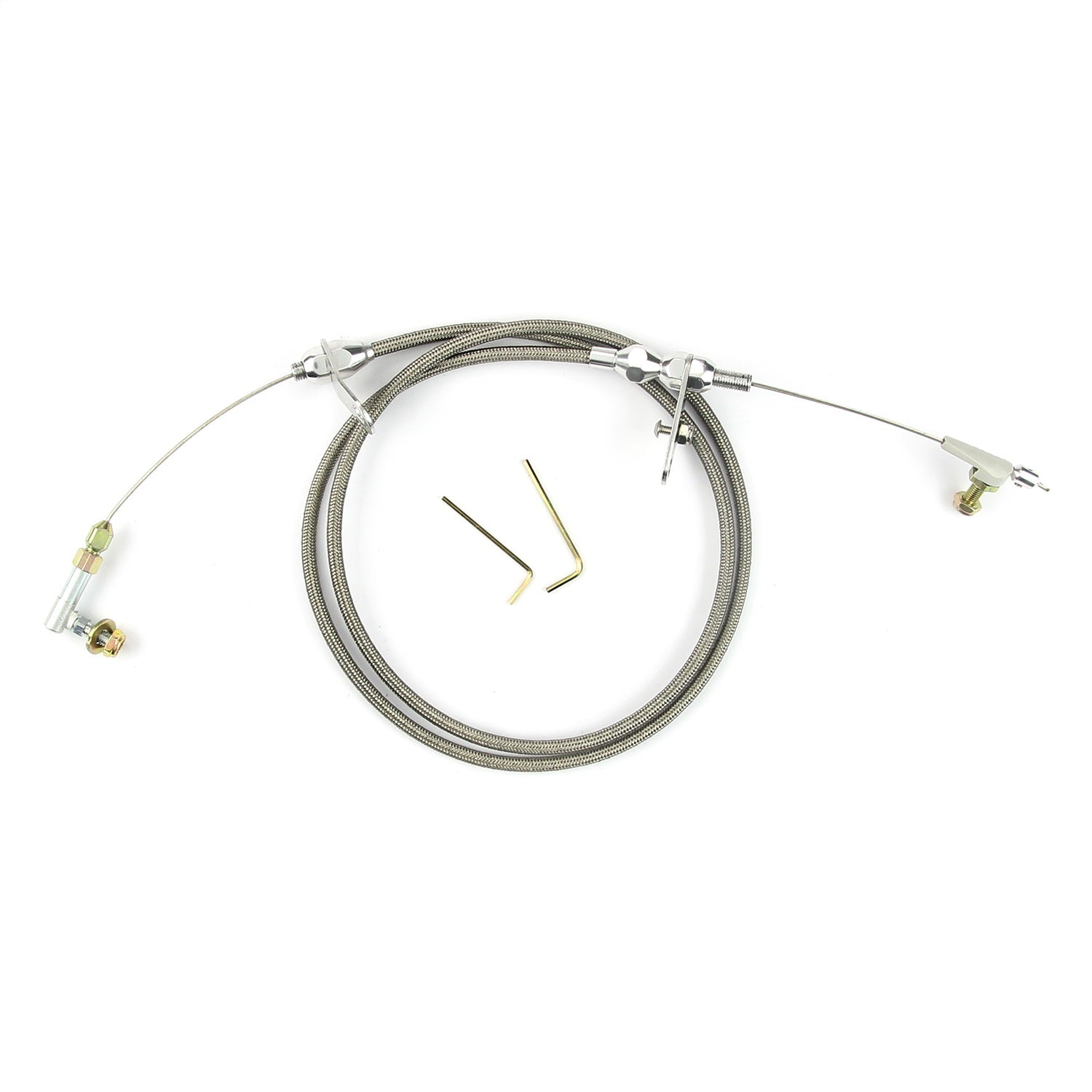 Lokars U-Cut-to-Fit Kickdown Cables are available in either stainless steel braided housing, black stainless steel braided housing or black housing. They are designed with a specially extruded liner for extended life of the cable – not to be confused with ordinary brake hose. Kickdown features aluminum fittings with ferrule to eliminate frayed cable ends. Kickdowns are adaptable for all types of manifolds including tunnel ram, blower manifolds and Weber induction systems. Mount our kickdown with our Stainless Steel Carburetor Bracket and Return Springs (sold separately). Complete instructions included in kit. Polished kickdown cables will include polished aluminum fittings. Black Hi-Tech stainless cables will include black anodized aluminum fittings.