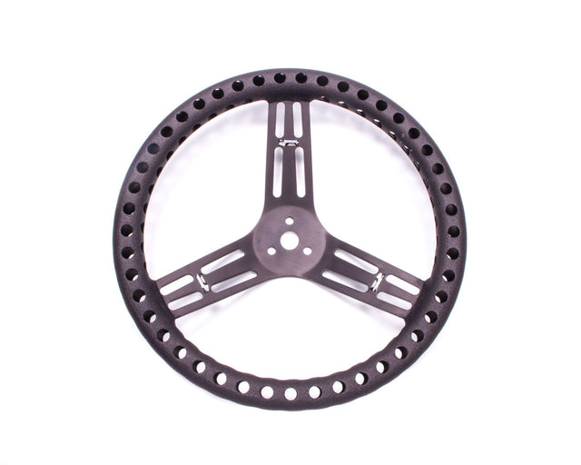 Steering Wheel - Lightweight - 14 in Diameter - 2.5 in Dish - 3-Spoke - Drilled / Shot Peened Grip - Aluminum - Black Anodized - Each