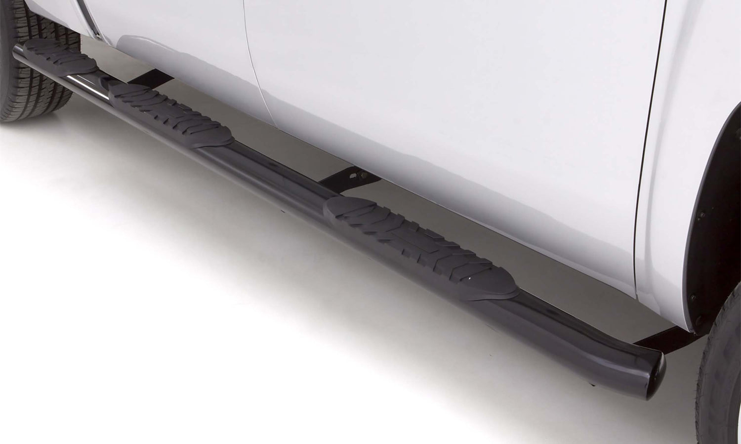 Take a step up with a set of LUND's 5in. Oval Bent Nerf Bars. These oval nerf bars are designed to custom fit your vehicle, complementing the overall look while providing you with safe, sure footing in and out of your vehicle – no matter your shoe type. In fact, each bar has a recessed step area with UV-resistant rubber grip pads providing solid traction and stability. LUND's 5in. Oval Bent Nerf Bars feature chrome-plated or all black matte finishes and are designed with a tubular shape and curved style, creating a rugged yet contemporary look and feel. Designed and engineered to go the distance. LUND's 5in. Oval Bent Nerf Bars are constructed with a cutting-edge polymer material set within a lightweight, durable aluminum frame, making these bars tough as metal and virtually corrosion-free. These bars, available in 80in. and 87in. lengths, also offers a broad stepping area designed larger than traditional step bars. Easy bolt-on installation. The nerf bars come pre-assembled and include custom mounting hardware for a direct, no-drill install. The mounting brackets, included with your order, are made to custom fit your specific truck or SUV's make and model, and once they're on, will provide your vehicle with added safety and convenience for years to come.
