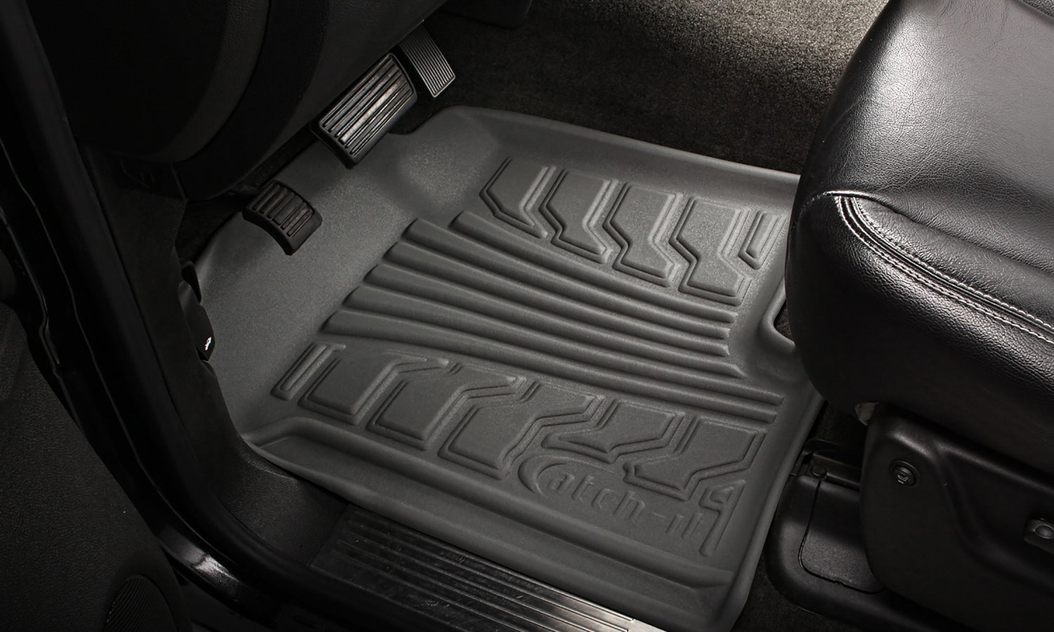 LUND's Catch-It Vinyl floor liners provide rugged all-weather protection with the style and performance engineered to last a lifetime. The custom-molded design fits your vehicle perfectly for full coverage, a factory-installed look, along with an aggressively nibbed underside ensuring your liners stay firmly in place at all times. The Catch-It Vinyl floor liners also feature a raised perimeter design for added protection keeping spills from running off the liner.