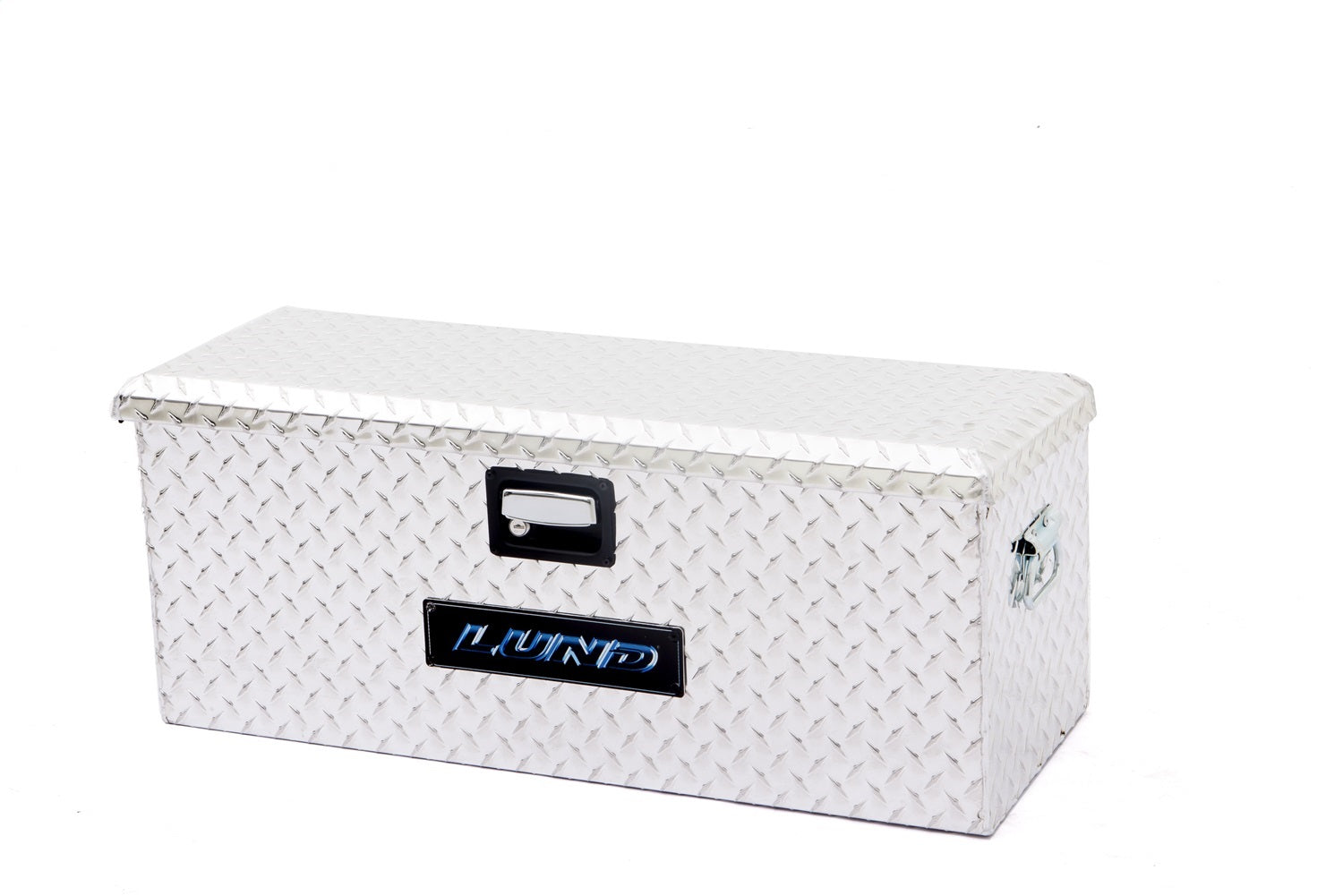 The Lund Aluminum Flush Mount Single Lid Truck Tool Box provides the extra room needed for an efficient, effective storage solution. Made of sturdy aluminum with a black finish, this box is ideal for use as a utility box or storage lock for an SUV. The diamond-tread finish withstands unimaginable beatings and will still look clean and scratchless while protecting against water and rust. An electrostatically applied finish and Ethafoam mounting strips protect against abrasions and scratching. This side mount box gives easy access to all its contents and comes with strong paddle handles. Strong, lockable T-handles provide added protection of valuables. Comes with a limited lifetime warranty that protects against defects in materials and workmanship.