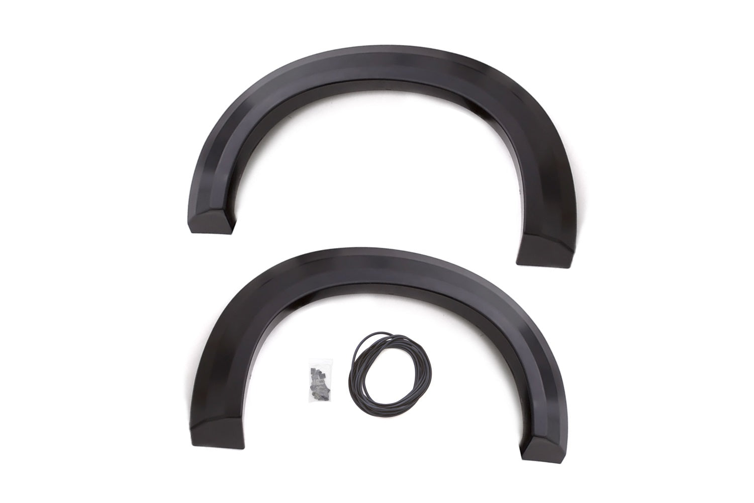 Extra Wide Style Fender Flare Set; Smooth Black Finish; 2 pc.; Rear Flare Height 6.75 in.; Rear Flare Tire Coverage 2.25 in.;