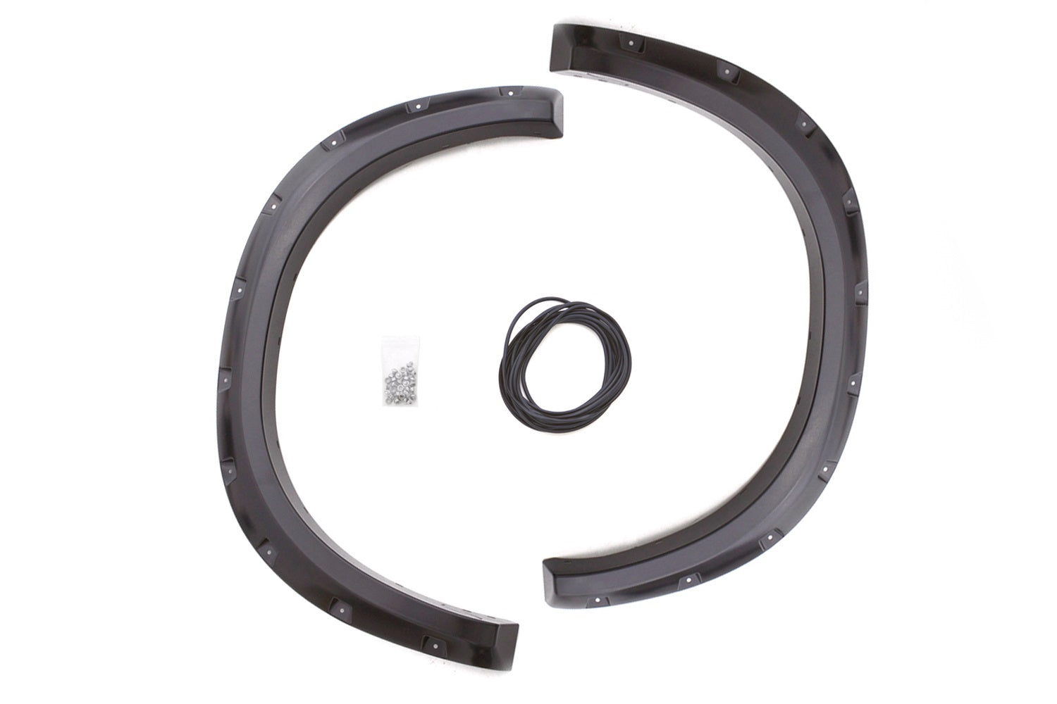 Rivet Style Fender Flare Set; Textured Black Finish; 2 pc.; Rear Flare Height 4.25 in.; Rear Flare Tire Coverage 2 in.;