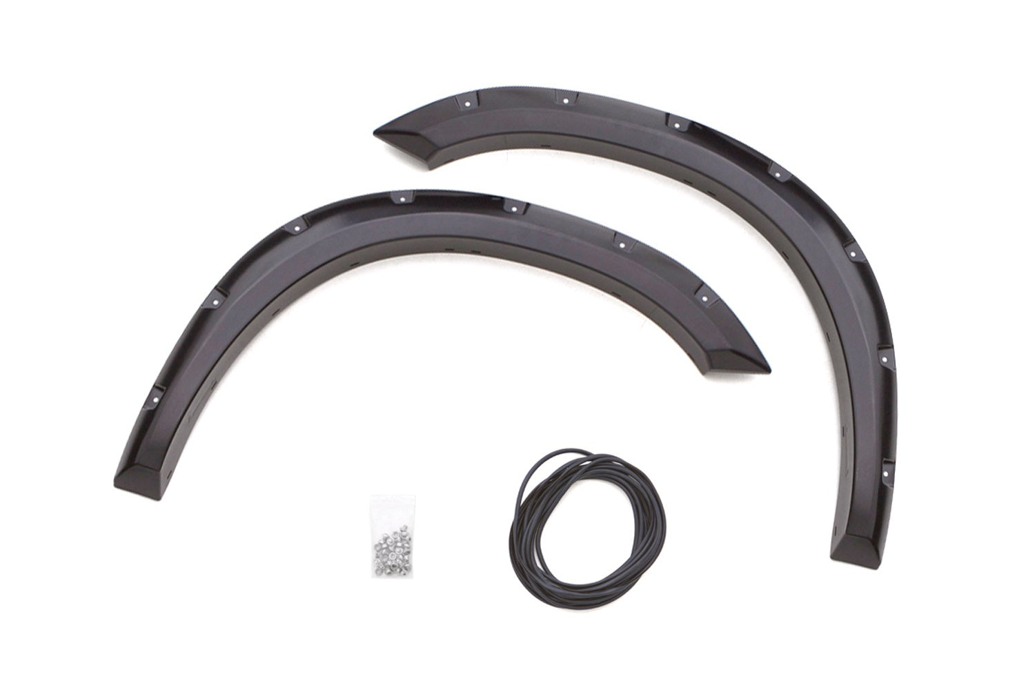 Rivet Style Fender Flare Set; Textured Black Finish; 2 pc.; Front Flare Height 4.25 in.; Front Flare Tire Coverage 2 in.;