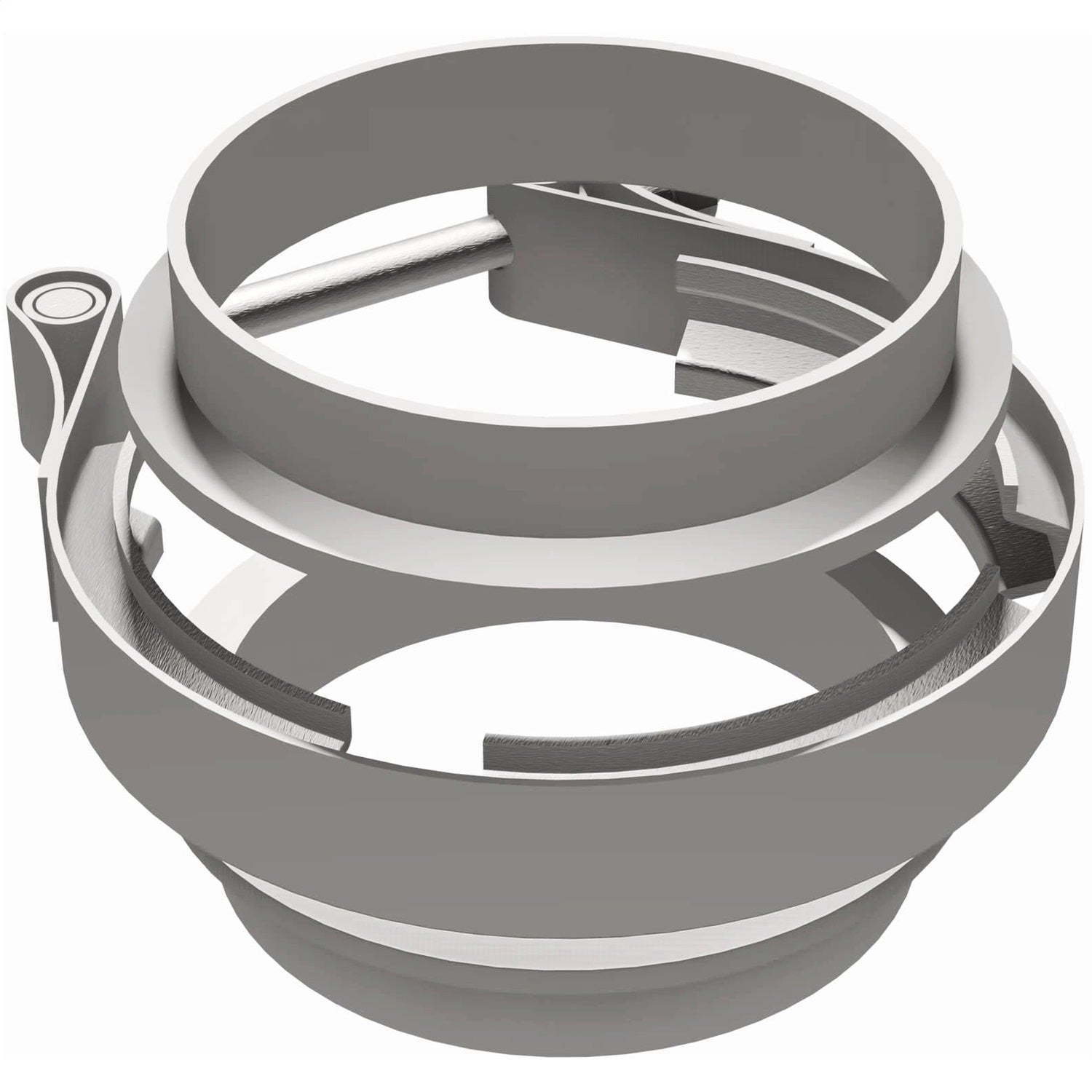 MagnaFlow offers stainless steel exhaust band clamps. Compared with conventional U-clamps and flat band clamps, these high torque clamps offer a much tighter seal by using a reaction block that transfers bolt torque into clamp strength assuring a tight seal.
