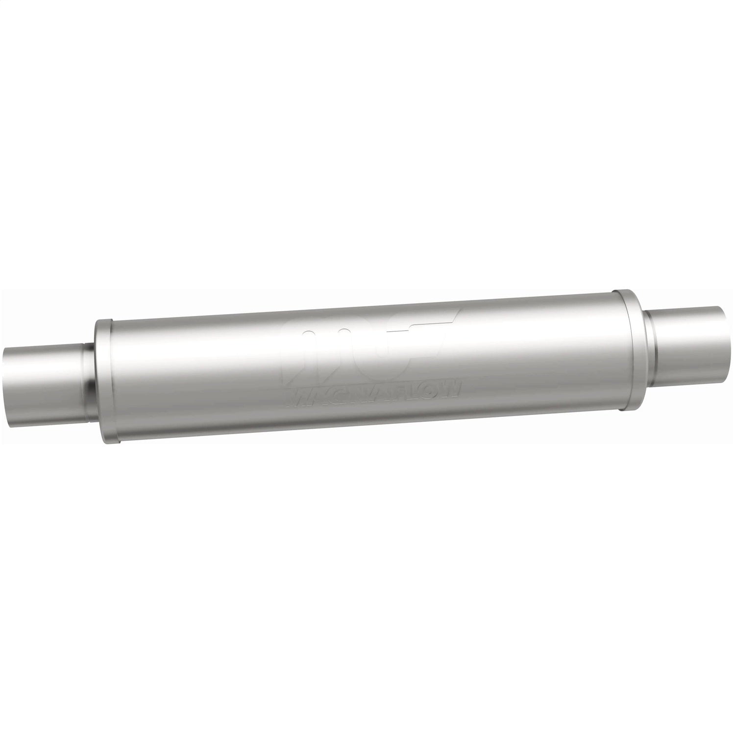 The MagnaFlow 4in. Round Straight-Through Performance Exhaust Muffler 10426 brings our world-famous exhaust sound and dyno-proven performance to your ride in a weight-optimized 4x4x18in. package with a premium satin finish. The straight-through free-flowing design of this round-bodied muffler's reversible, universal 2.5/2.5in. diameter inlet/outlet layout enables versatile installation options to match the spacing requirements of your vehicle. Due to the cutting and welding involved, professional installation is highly recommended. Internally, 10426 utilizes a perforated stainless steel core wrapped in stainless steel mesh and acoustic fiber fill to achieve a powerful, resonant tone. This muffler is made of durable, corrosion resistant stainless steel and produced using cutting-edge CNC precision robotic manufacturing techniques, all backed by MagnaFlow's limited lifetime construction warranty.