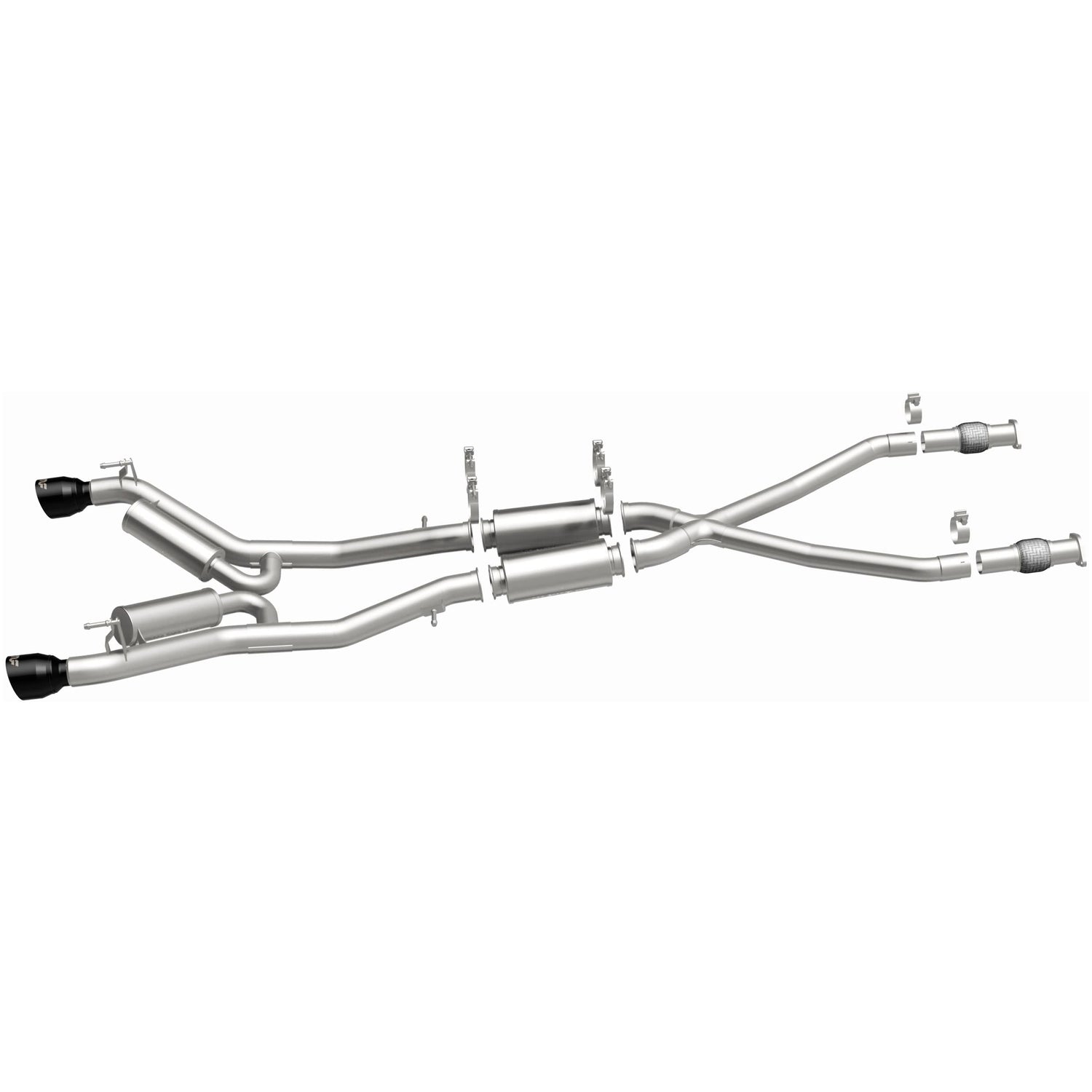 Unleash the full potential of your 2023–2025 Nissan Z with the MagnaFlow SPEQ Series Cat-Back Performance Exhaust System (#19697). Crafted for true driving enthusiasts, this system delivers dyno-proven performance and a sound that turns heads—without the dreaded cabin drone. Engineered to replace your factory exhaust from just behind the catalytic converters all the way to the tips, this full cat-back system features 2.5" mandrel-bent piping and an X-pipe layout for smoother, more balanced flow. Two inline resonators help refine the tone, while our No Drone Technology (NDT) keeps things comfortable on long drives. Finished with aggressive 4.5" black chrome, angle-cut tips, this system doesn’t just perform—it looks the part too. Built with precision CNC robotic manufacturing and backed by MagnaFlow’s limited lifetime construction warranty, the #19697 exhaust is the ultimate upgrade for your Nissan Z. More sound. More style. More Z.