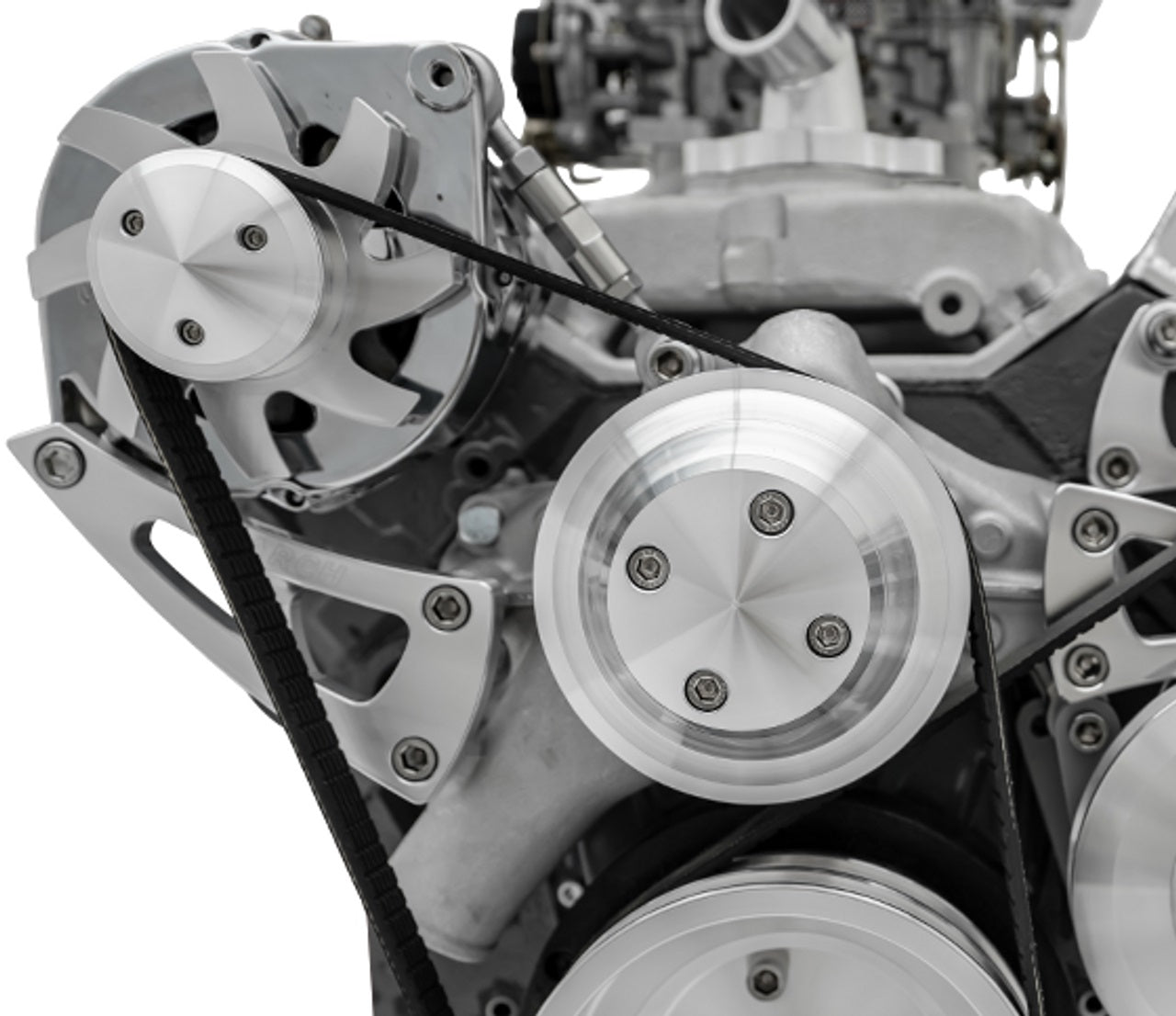 Alternator Bracket - High Performance - Passenger Side - High Mount - Water Pump Mount - Aluminum - Clear Powder Coat - Long Water Pump - GM 10SI Alternators - Big Block Chevy - Kit