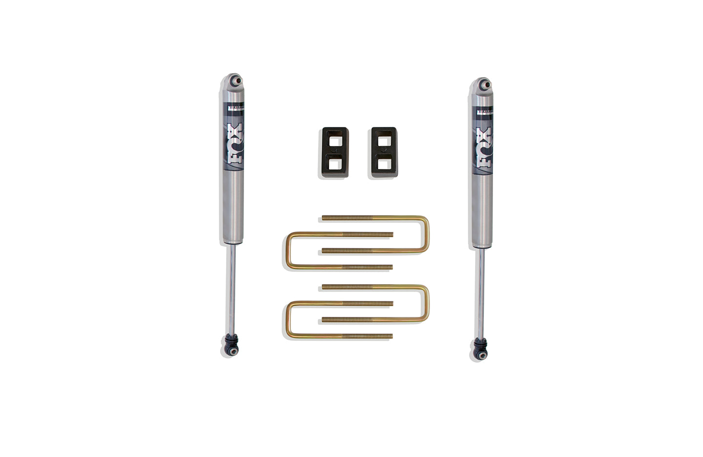 MAX TRAC SUSPENSION'S PART# 901320F IS A REAR BOX KIT INCLUDING 2" LIFT BLOCKS, U-BOLTS & A PAIR OF FOX 2.0 PERFORMANCE SERIES REAR SHOCKS