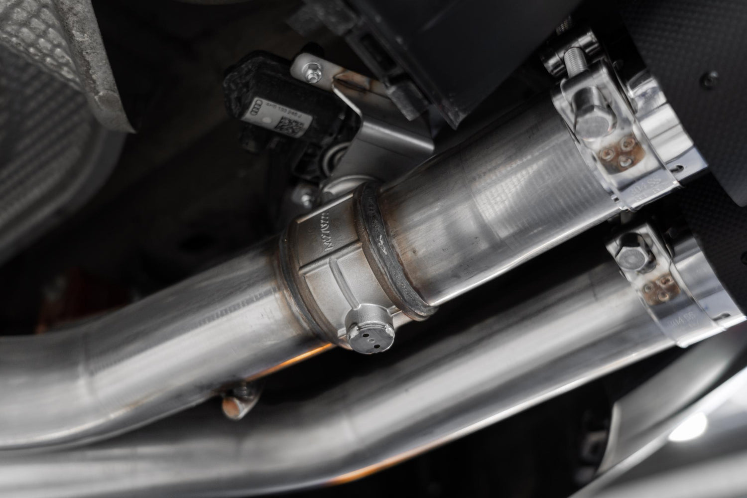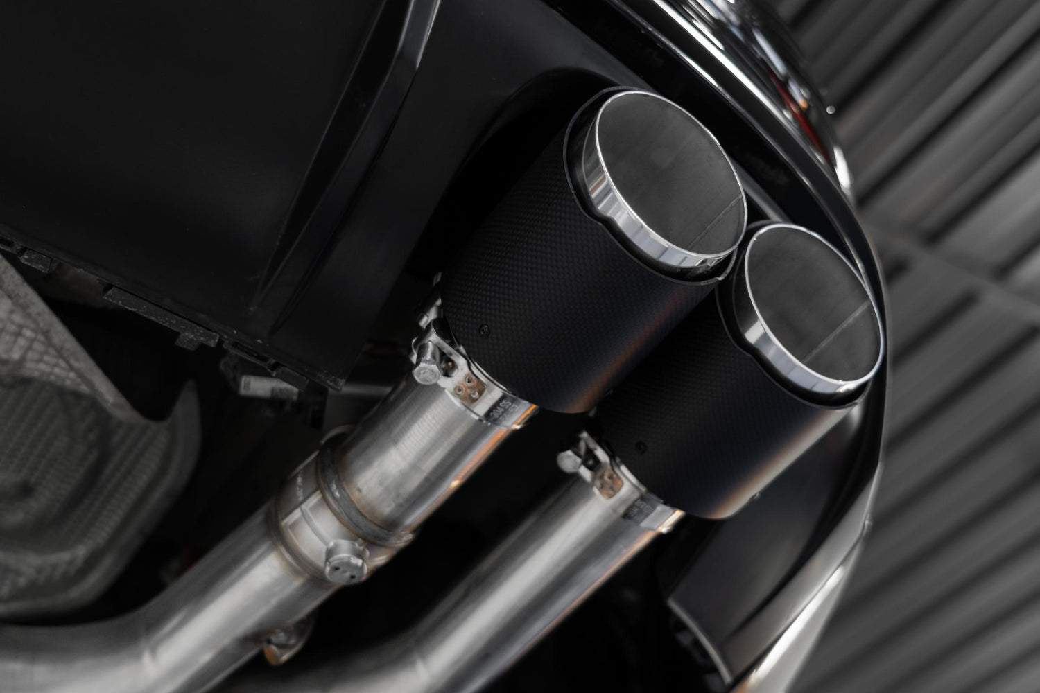 2015-2020 Audi S3 T304 Stainless Steel 3 Inch Cat Back Quad Split Rear Exit with Carbon Fiber Tips Active Exhaust