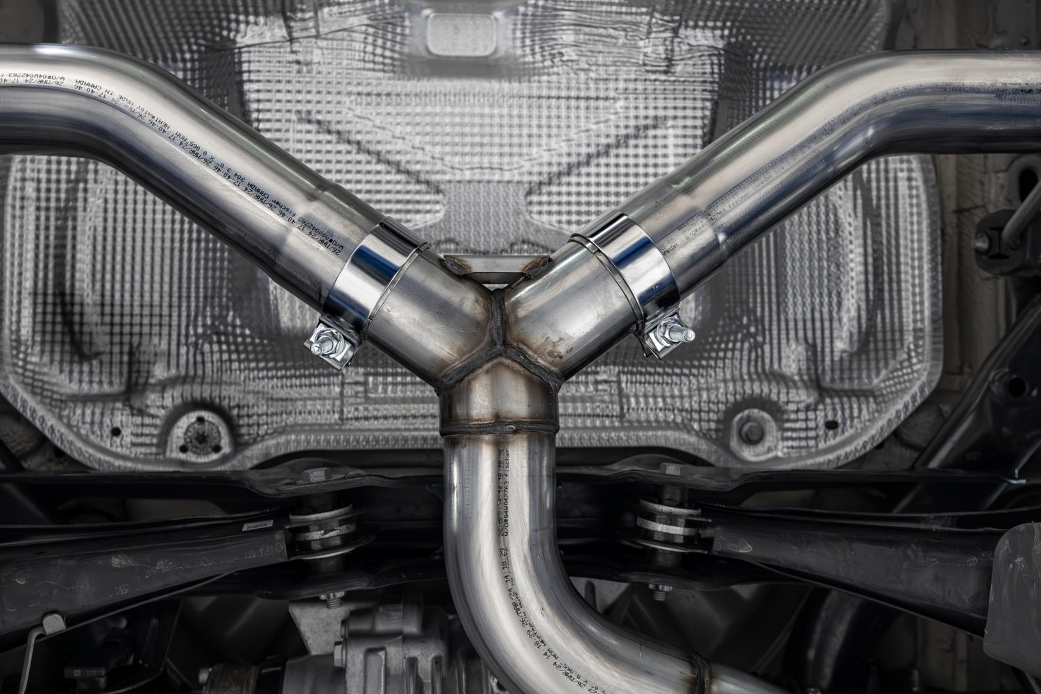 Armor Pro, T304 stainless steel 3 inch cat-back, quad split rear with carbon fiber exhaust tips, valve delete