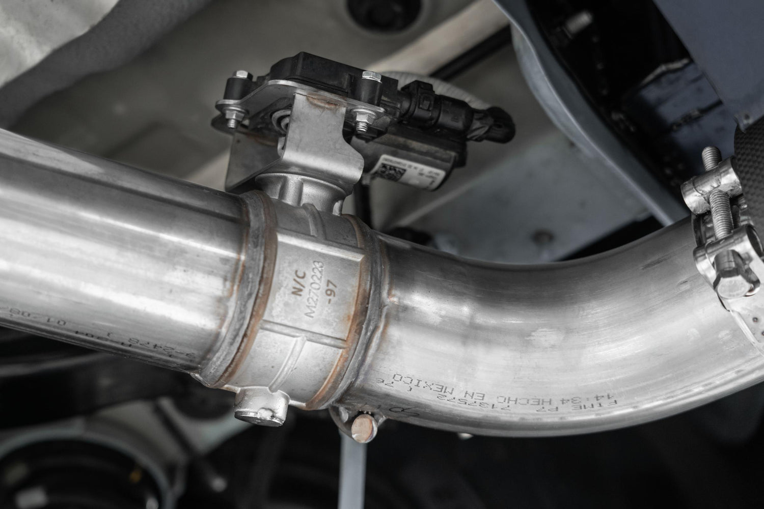 Armor Pro T304 stainless steel 3-inch cat-back, dual rear exit with carbon fiber tips, active exhaust
